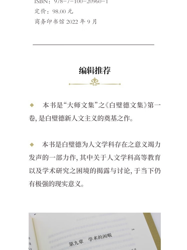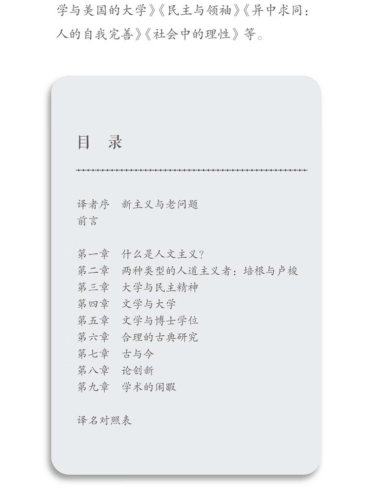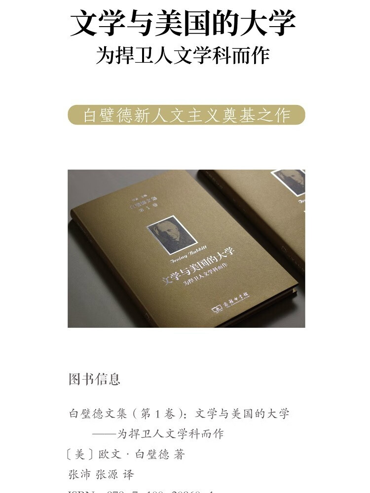 2.本书是白璧德为人文学科存在之意义竭力发声的一部力作,其中关于人文学科高等教育以及学术研究之困境的揭露与讨论,于当下仍有极强的现实意义。