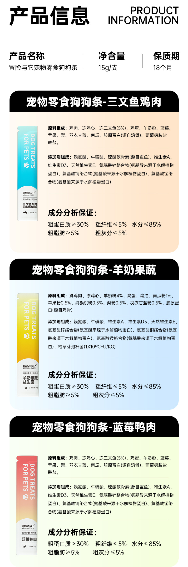 冒险与它狗狗零食条 狗条18g 多口味 湿粮成犬幼犬通用零食 工厂直售