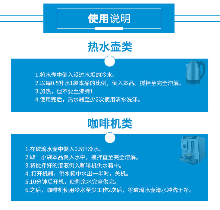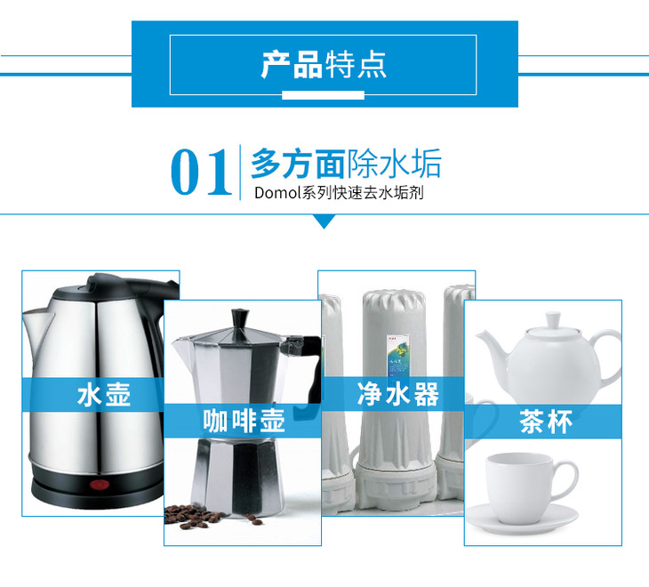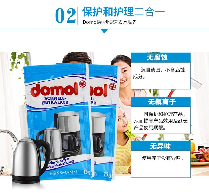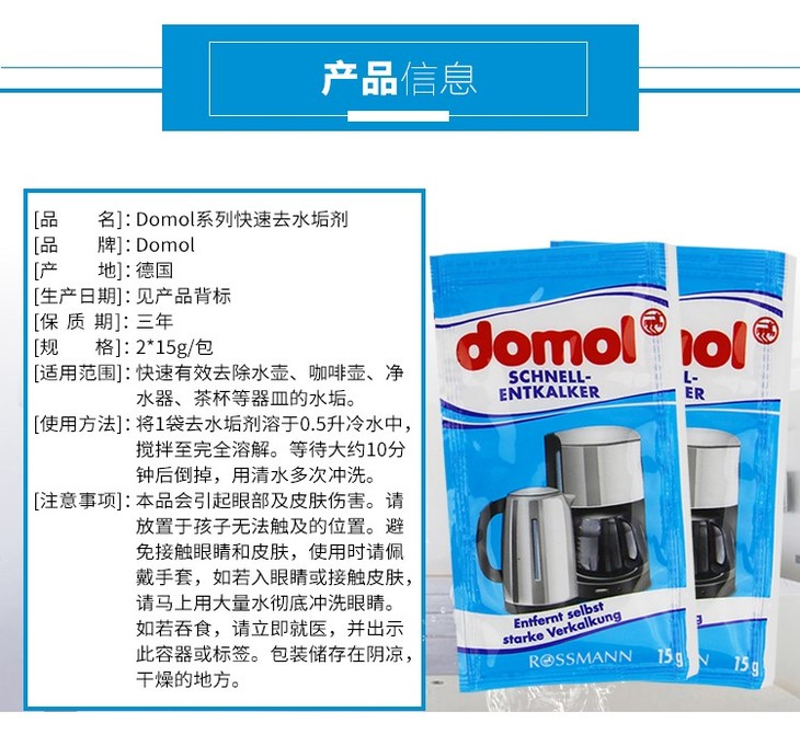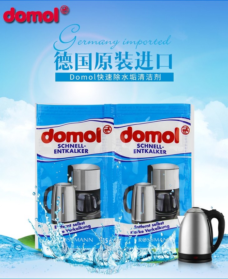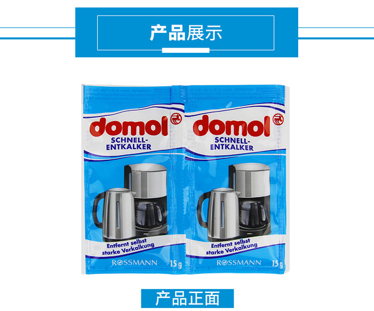 【一般贸易】【授权商品】德国原装进口domol水壶除垢剂去污 清除茶垢水垢咖啡垢饮水清洁剂1组2*15g