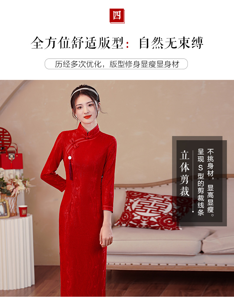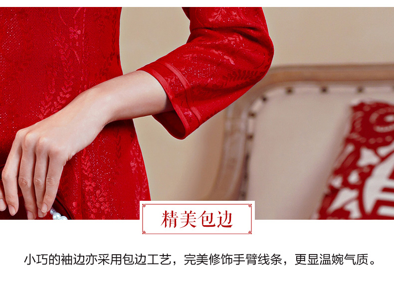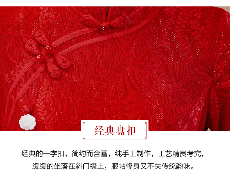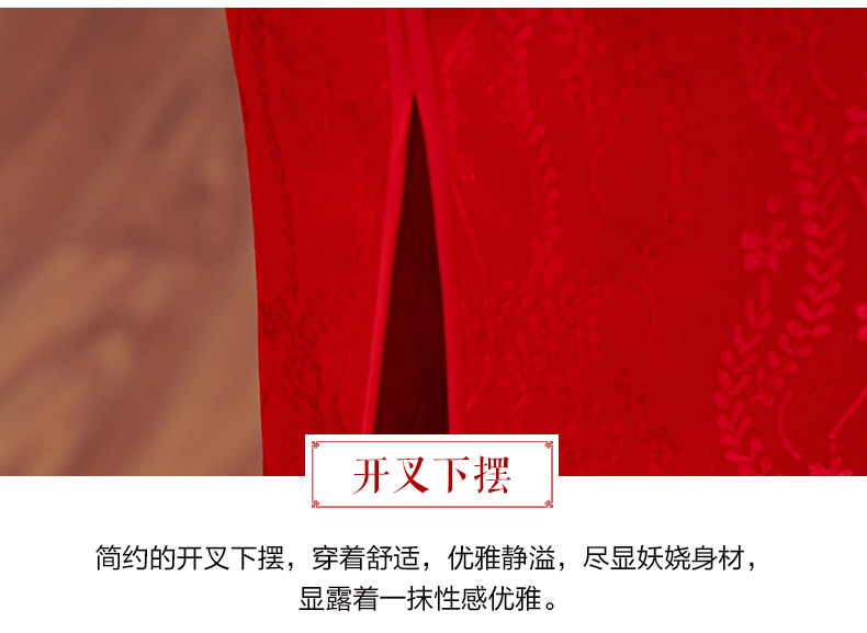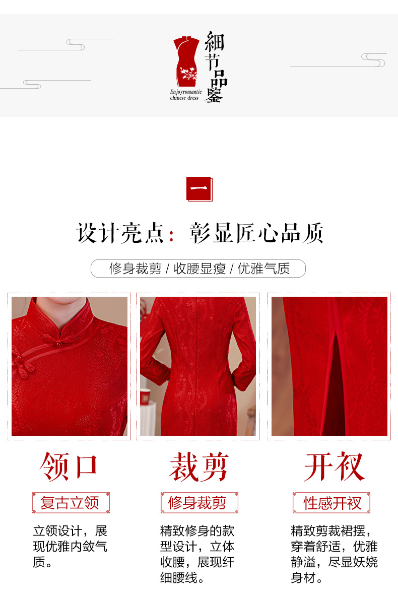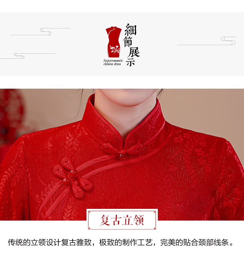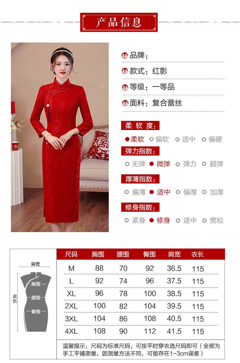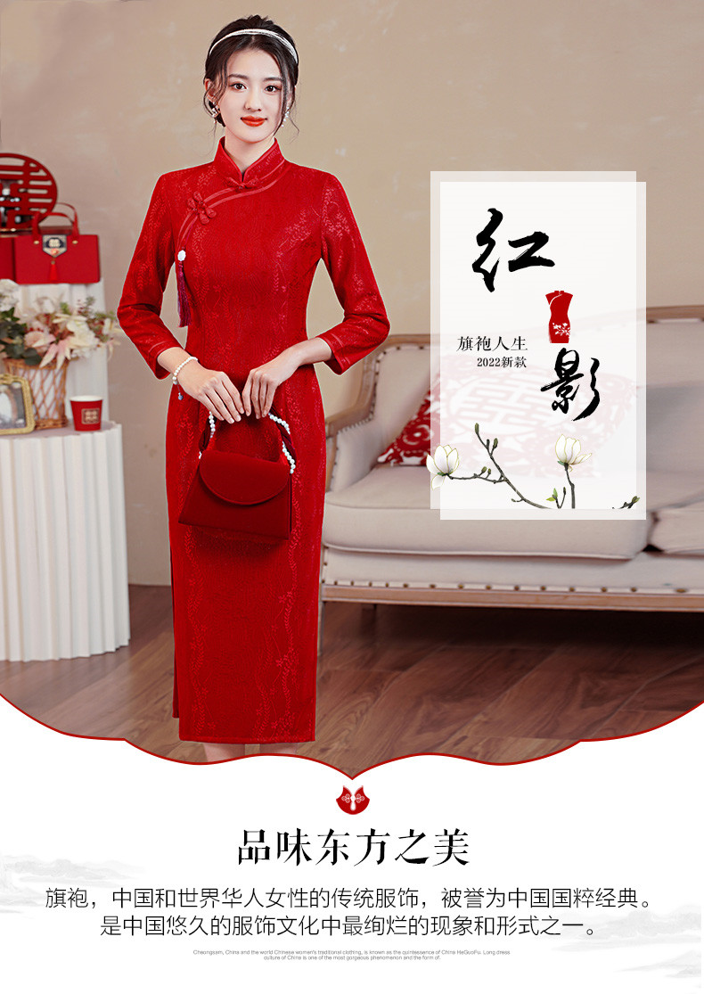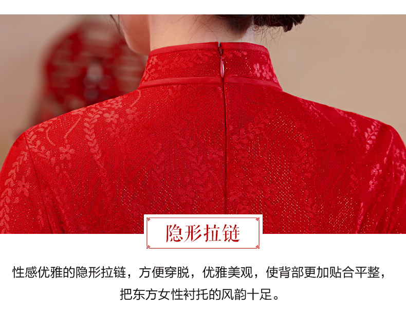 【红影】高档复合蕾丝面料修身旗袍CJS70102