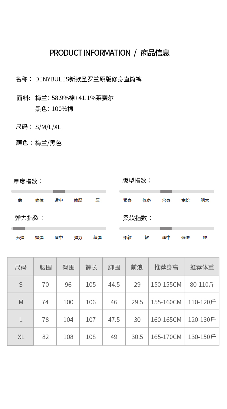 DENYBULES 春夏新款大牌原版修身直筒裤时尚休闲复古宽松水洗