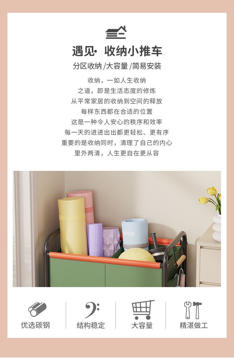【玩具收纳筐】杂物收纳箱 卧室床边置物架 客厅四轮可移动大容量小推车