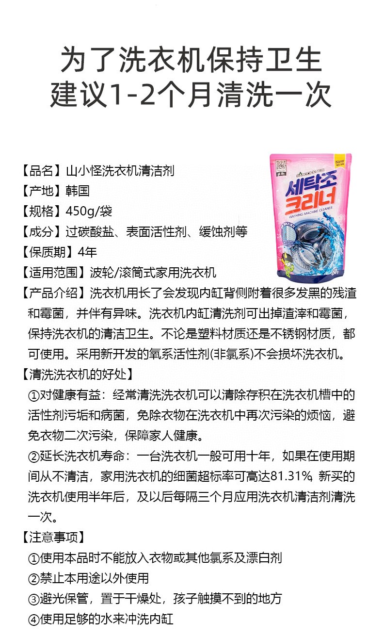 光用洗衣机给衣服洗澡..您考虑过洗衣机的感受吗... 洗衣机长时间不洗,细菌会严重超标,每一件丢进去洗过的衣服都会被二次污染!山鬼可以有效的分解霉菌,深入洗衣机缝隙祛除日积月累的污垢,找到“初见”的感觉...
