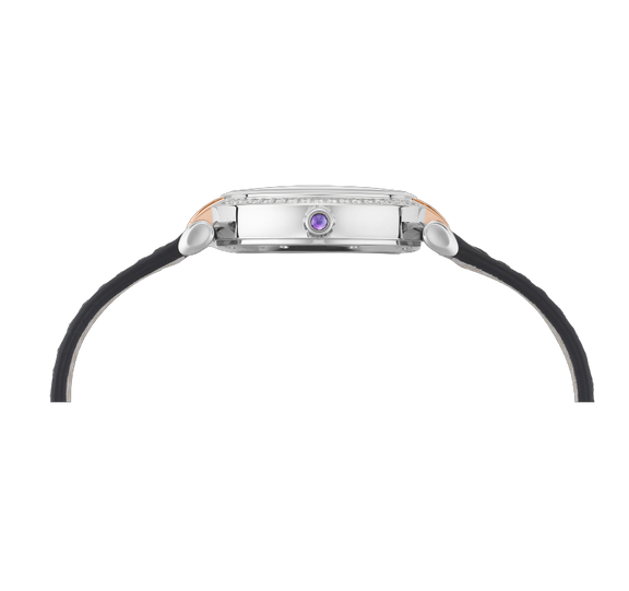 镜面材质 | 蓝宝石水晶玻璃 | 表盘 | 精钢 18K玫瑰金镶钻表壳 银色与珍珠母贝表盘,钻石0.46克拉 罗马数字及条形时标 透底,透明蓝宝石水晶 |