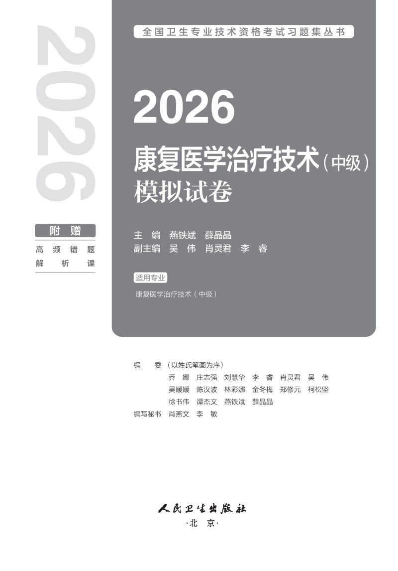 书名:2026康复医学治疗技术(中级)模拟试卷