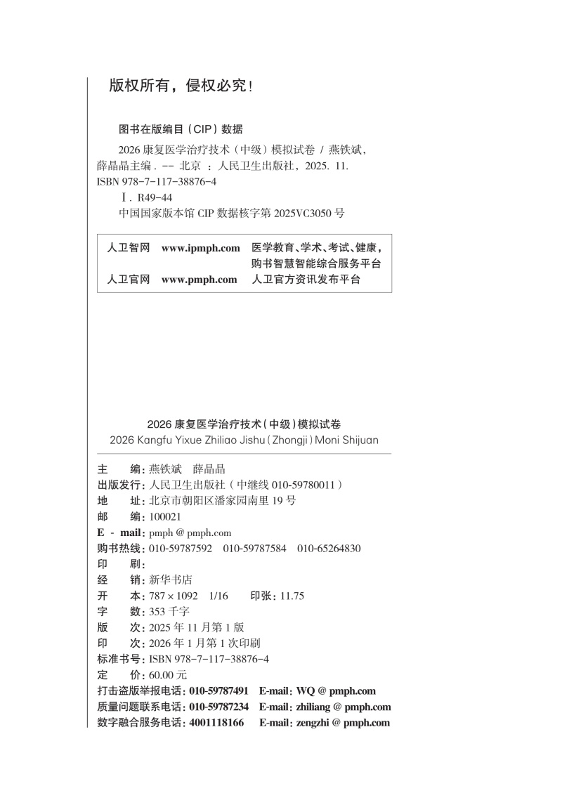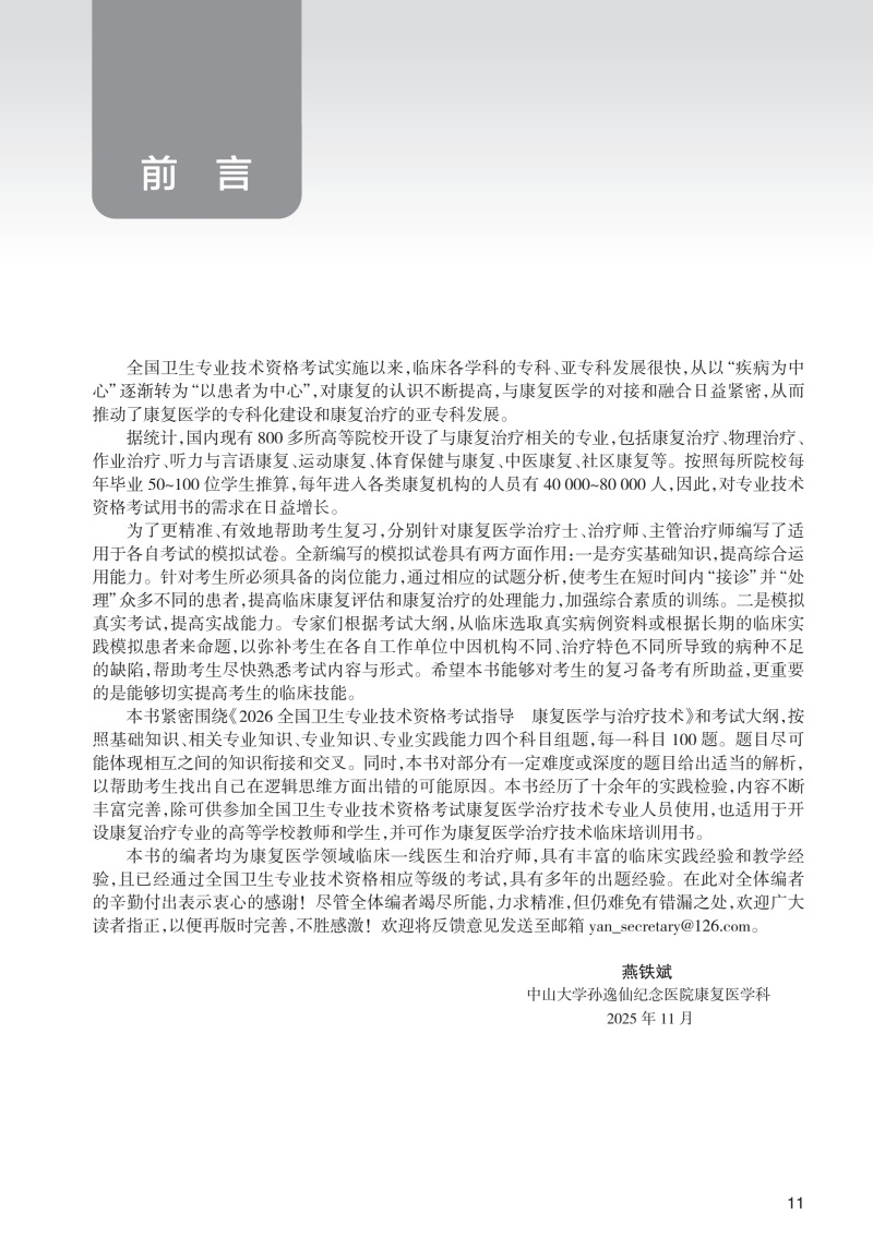 2026康复医学治疗技术(中级)模拟试卷 全国卫生专业技术资格考试习题集丛书 燕铁斌 薛晶晶 主编 9787117388764人民卫生出版社