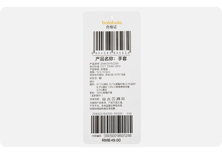 巴拉巴拉儿童手套男童女童包指手套加绒冬季保暖舒适户外休闲新款