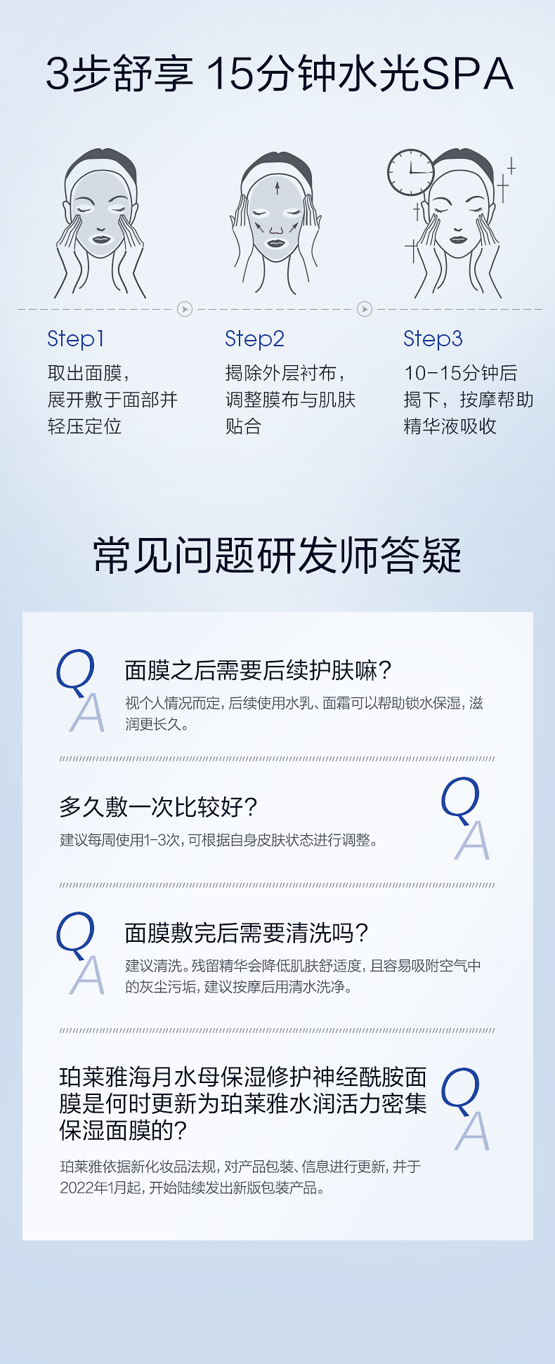 【拍一发3盒】珀莱雅水润活力密集保湿面膜25ml*5片/盒