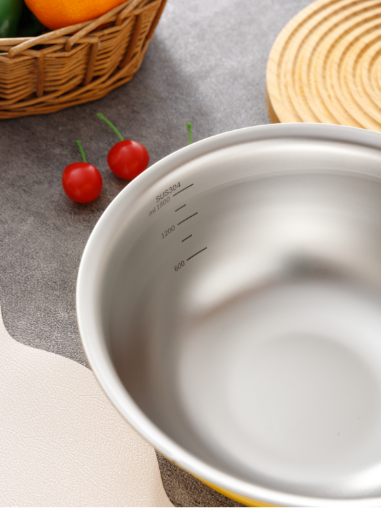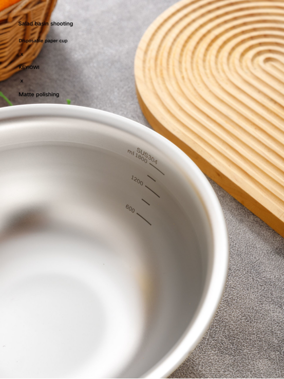 采用食品级304不锈钢材质,不含BPA,健康安全,放心盛放食物。 电解工艺,使其低调不易产生划痕,又好清洗,盆壁加高防飞溅。 带刻度线,方便度量 ,一目 了然。 搅拌沙拉,做凉拌菜等,可以放开手来做了,也可放冰箱收纳食物