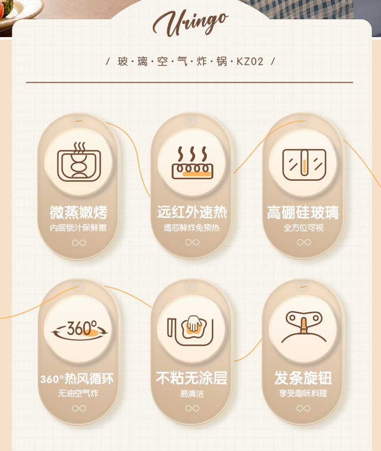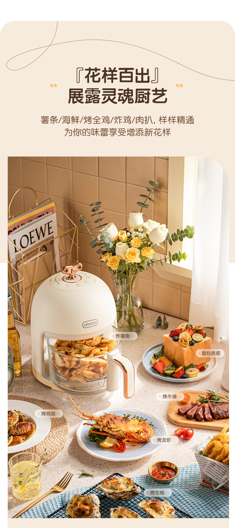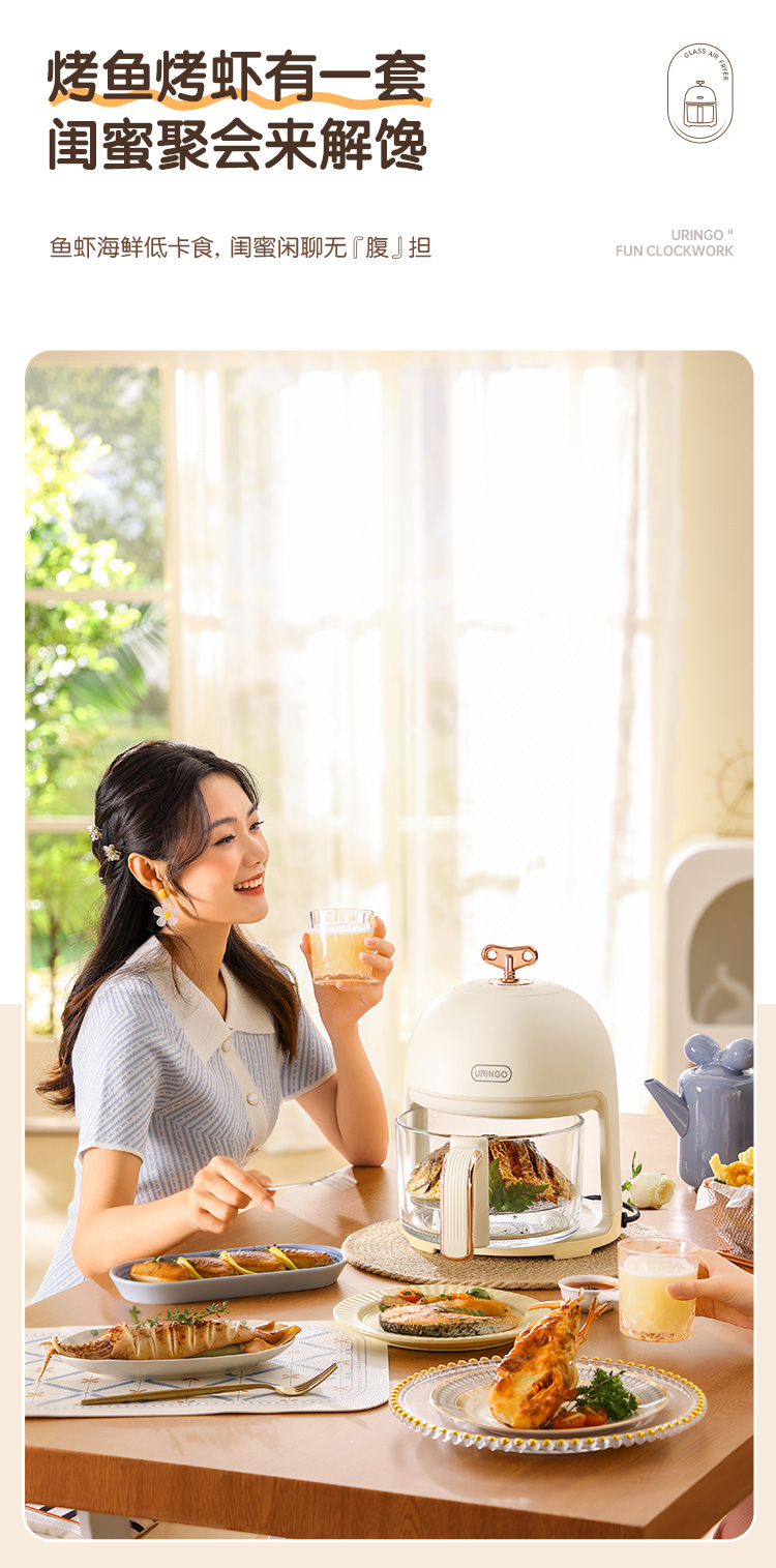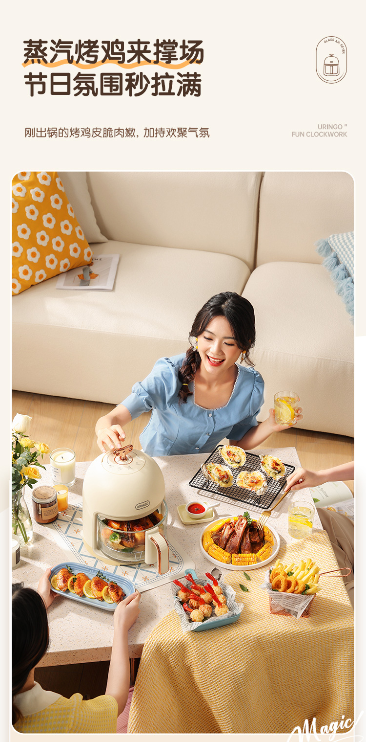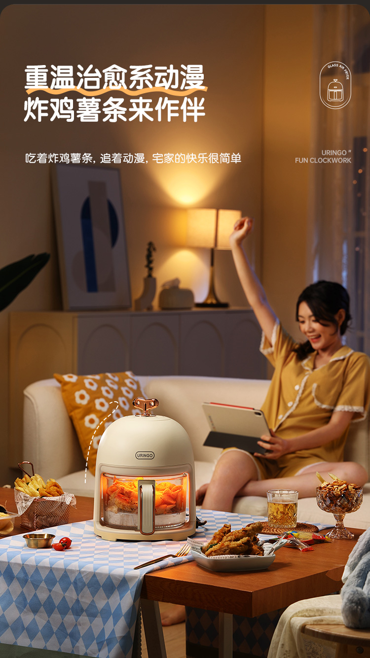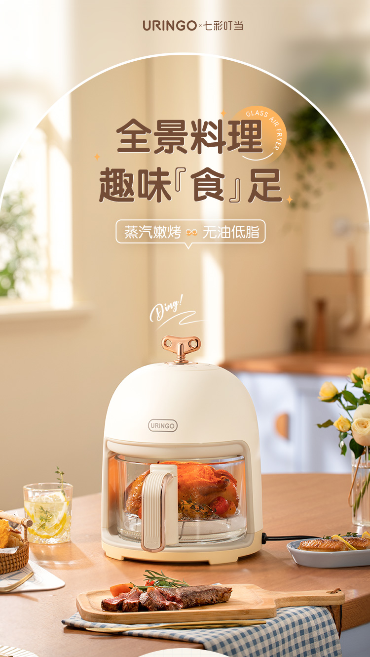 七彩叮当空气炸锅透明可视家用2022新款多功能蒸汽玻璃空气电炸锅