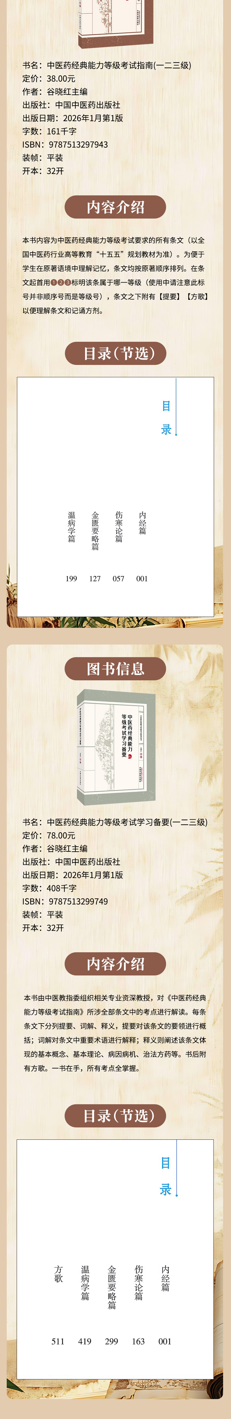 书名:【全2册】中医药经典能力等级考试指南+中医药经典能力等级考试学习备要