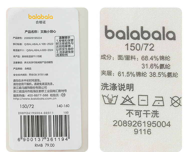 【balaOne】巴拉巴拉女童发育内衣成长期防凸点少女文胸衣小背心