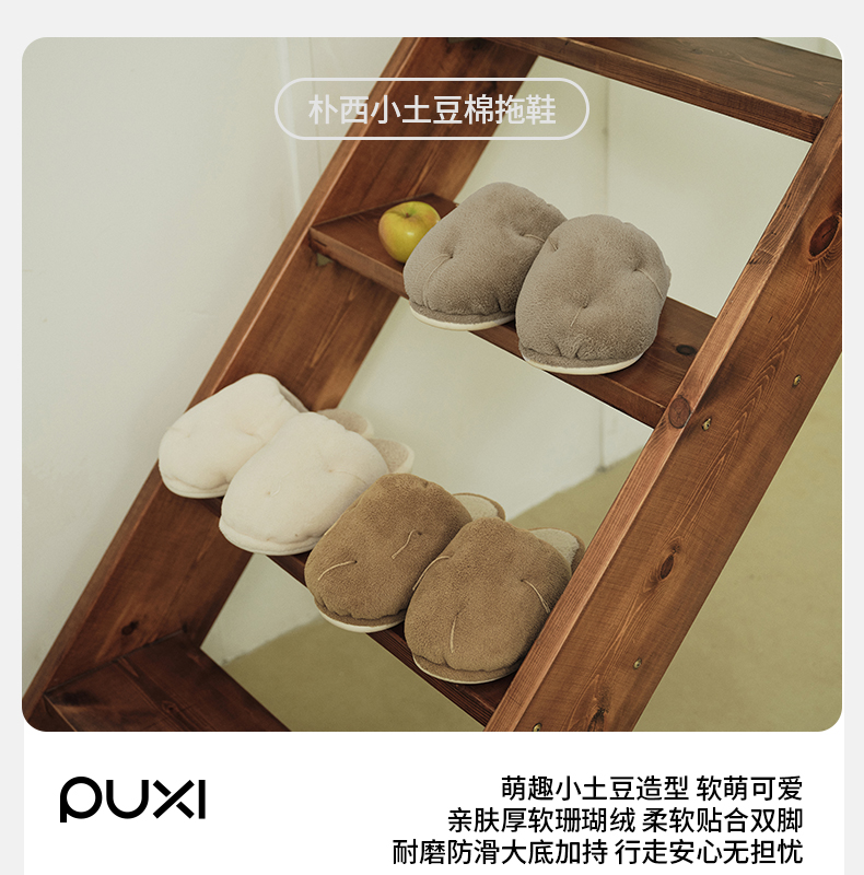 2025秋冬上新朴西小土豆珊瑚绒棉拖鞋女家居室内保暖加绒拖鞋