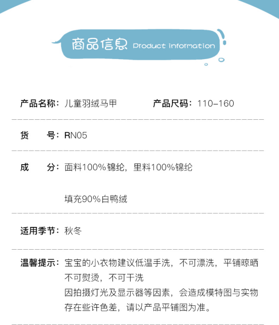 品名:胖胖象糖果羽绒百搭马甲RN05
