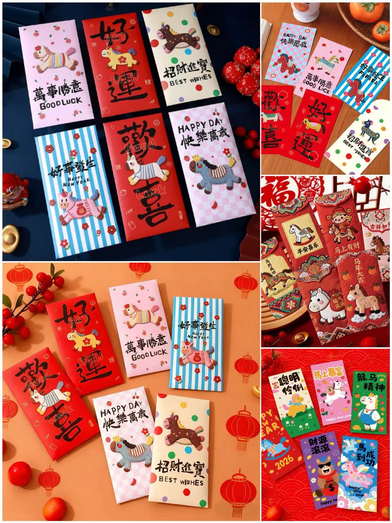愿得禧-2026马年立体刺绣红包,个性创意插画高克重加厚加大卡纸;春节/节日红包9*17cm
