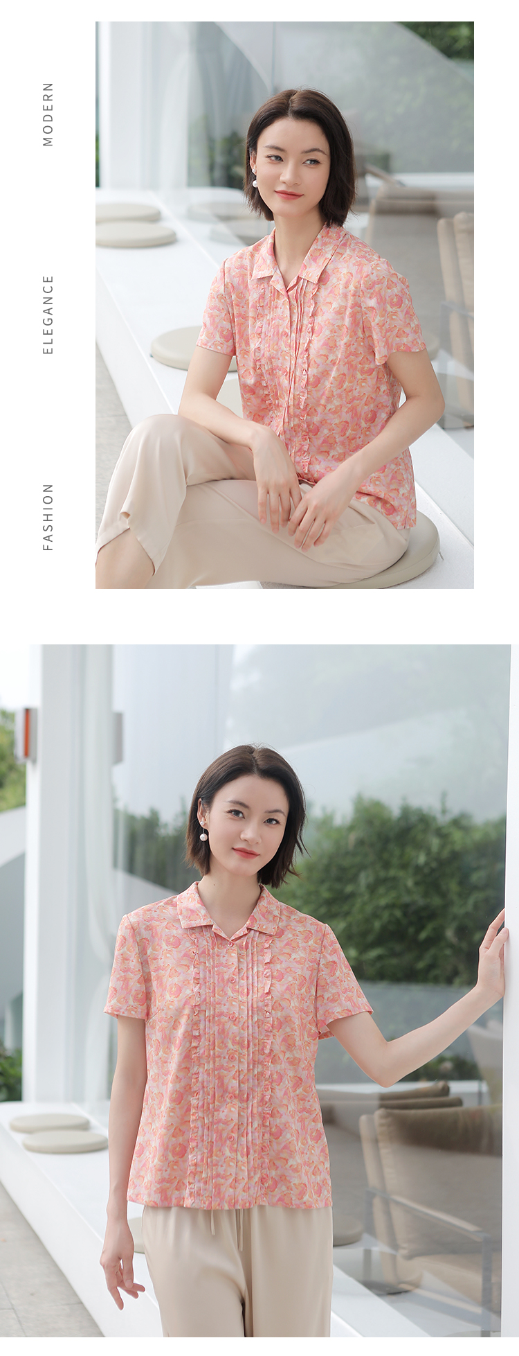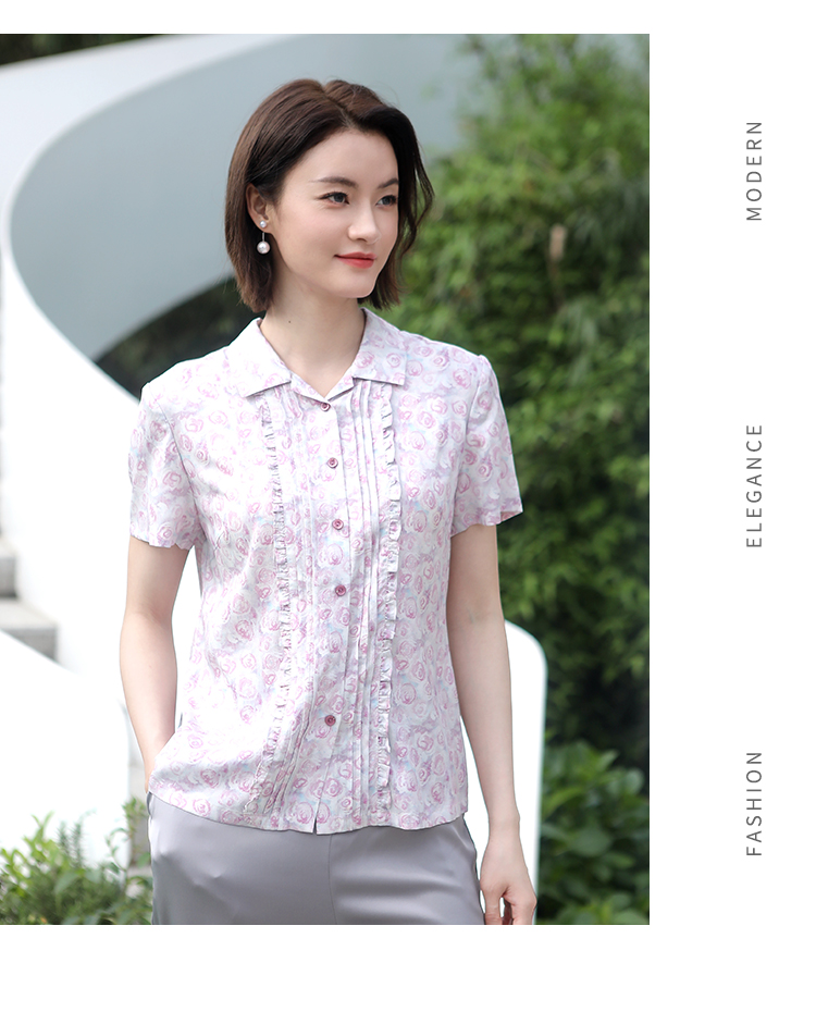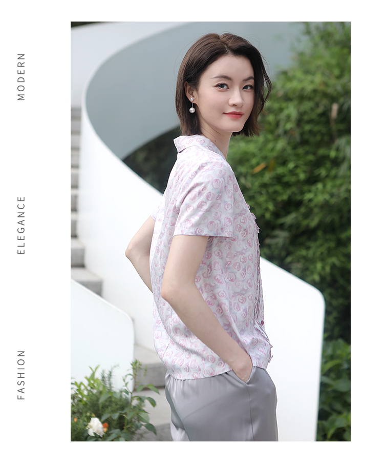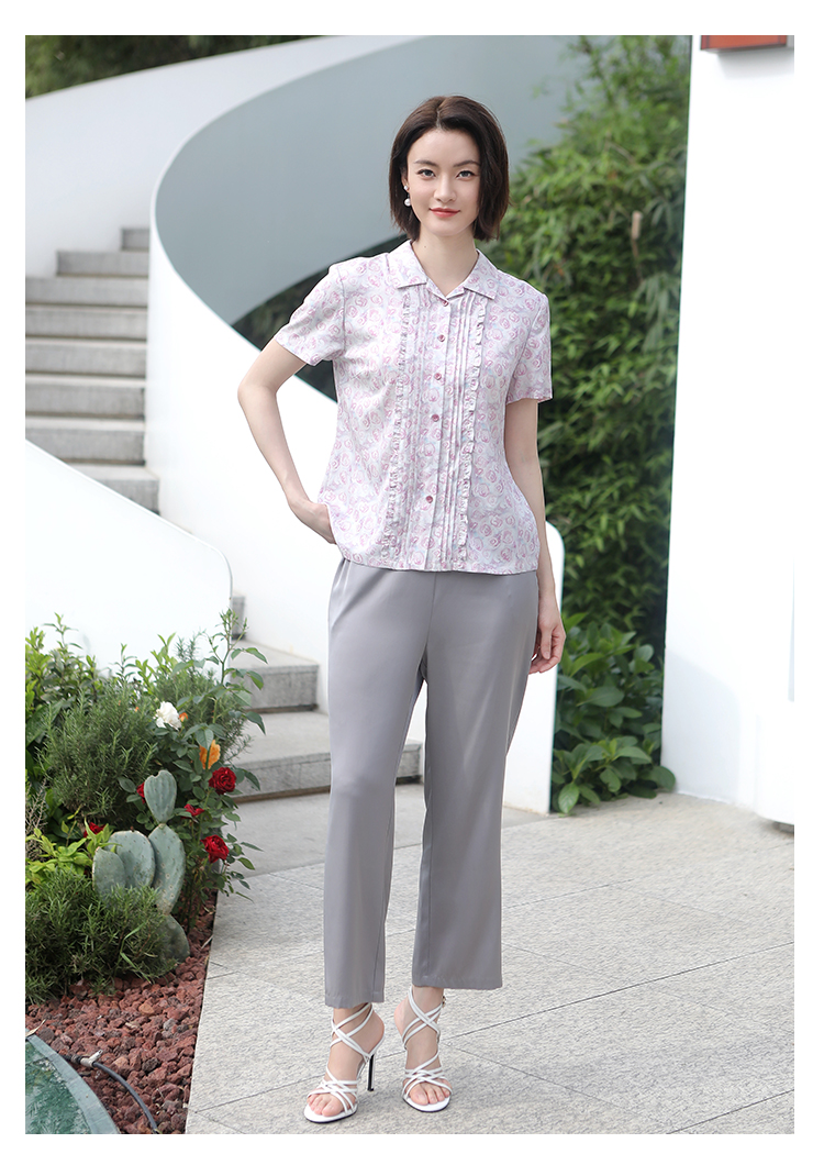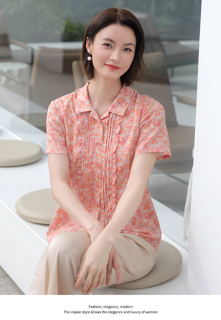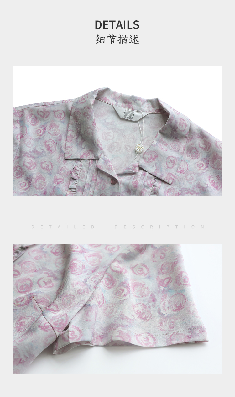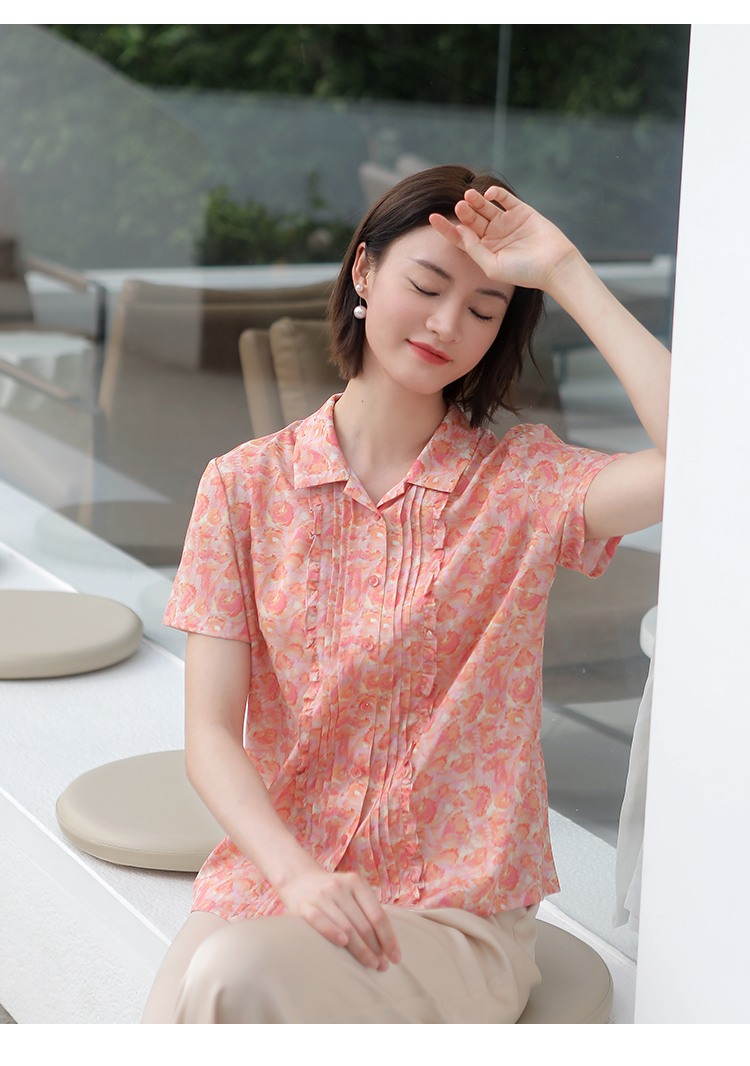 佐尔美佐尔美夏季新款 气质碎花桑蚕丝短袖衬衣女E32CS08