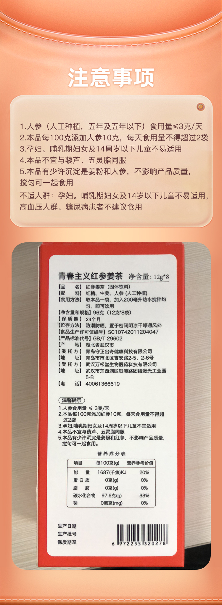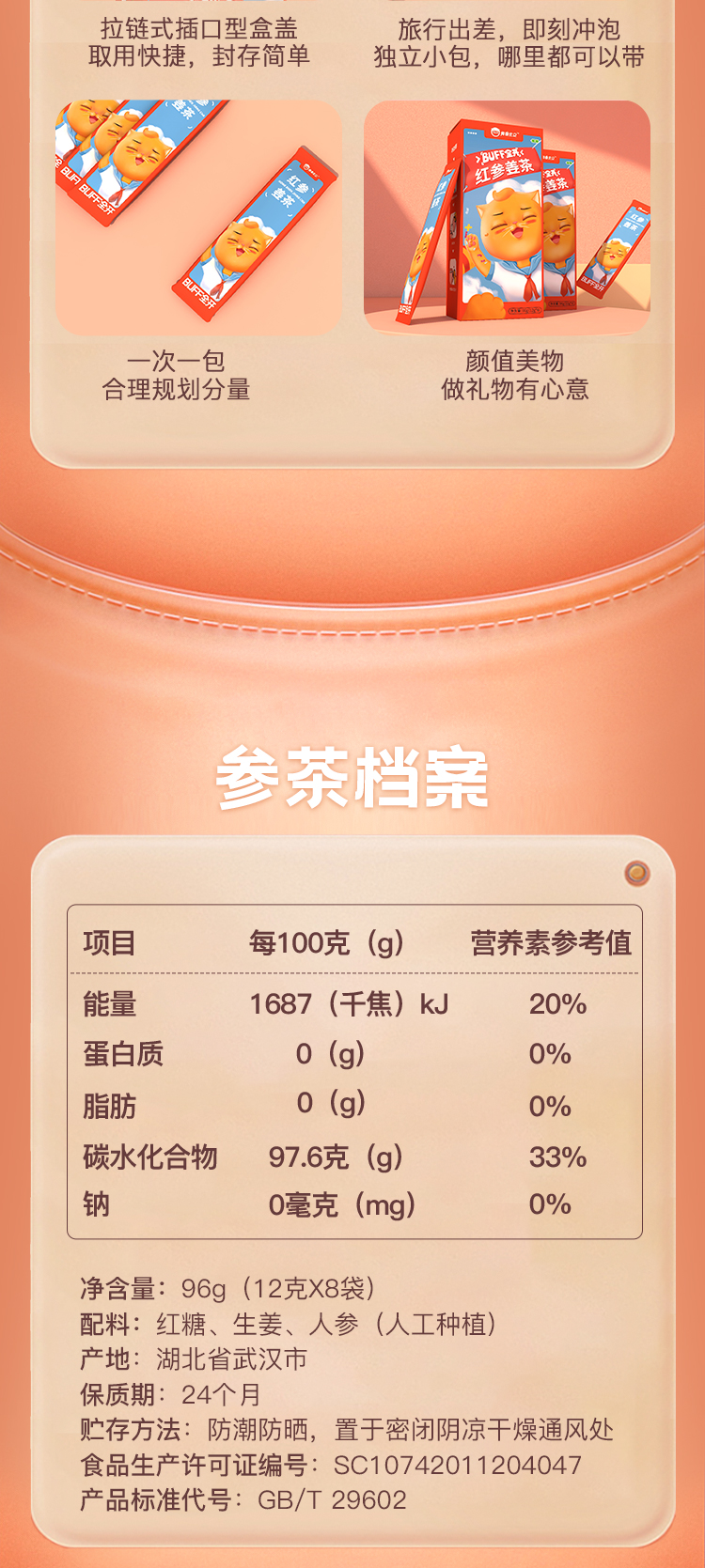 【节后发货】红参姜茶 8条/盒(自营品)