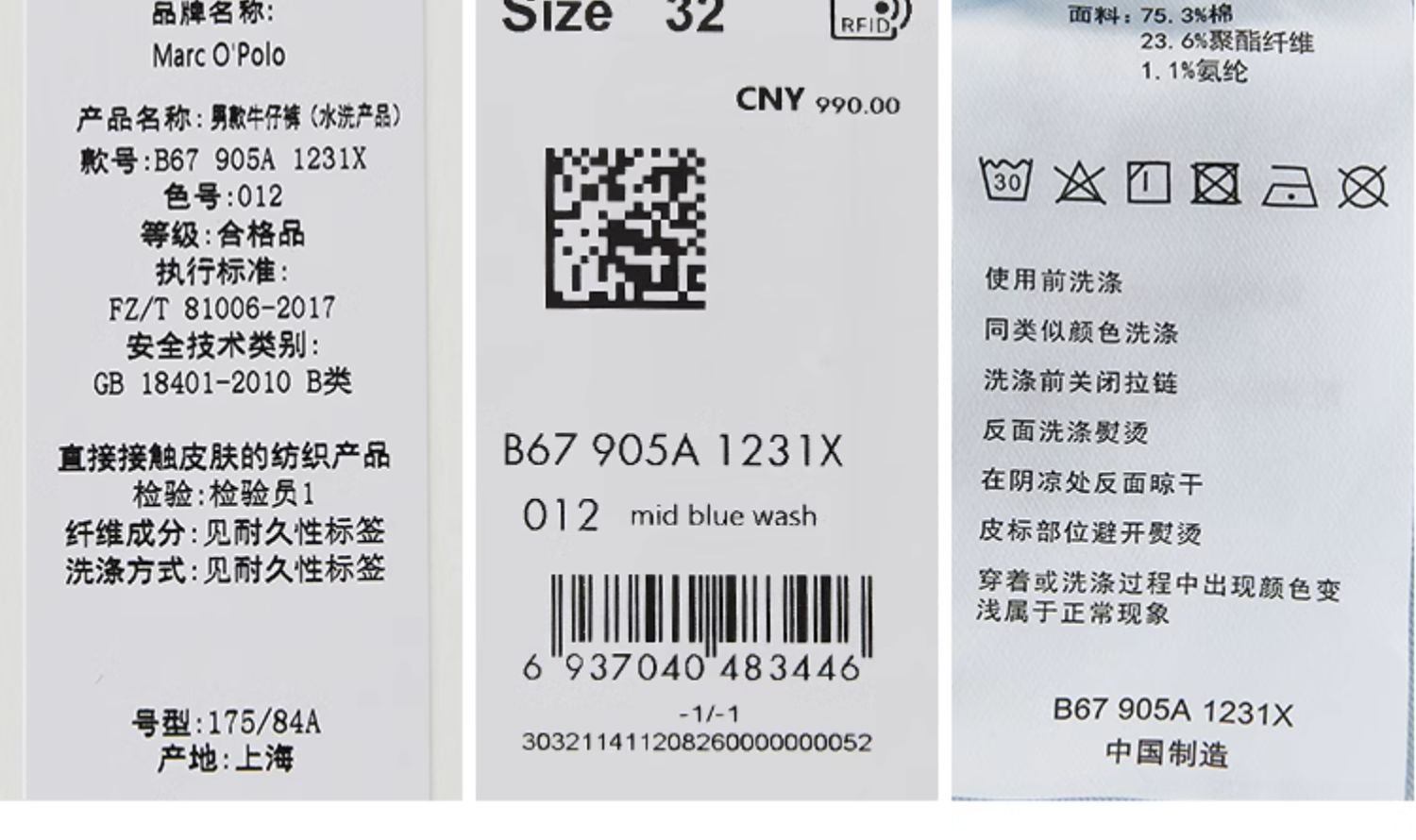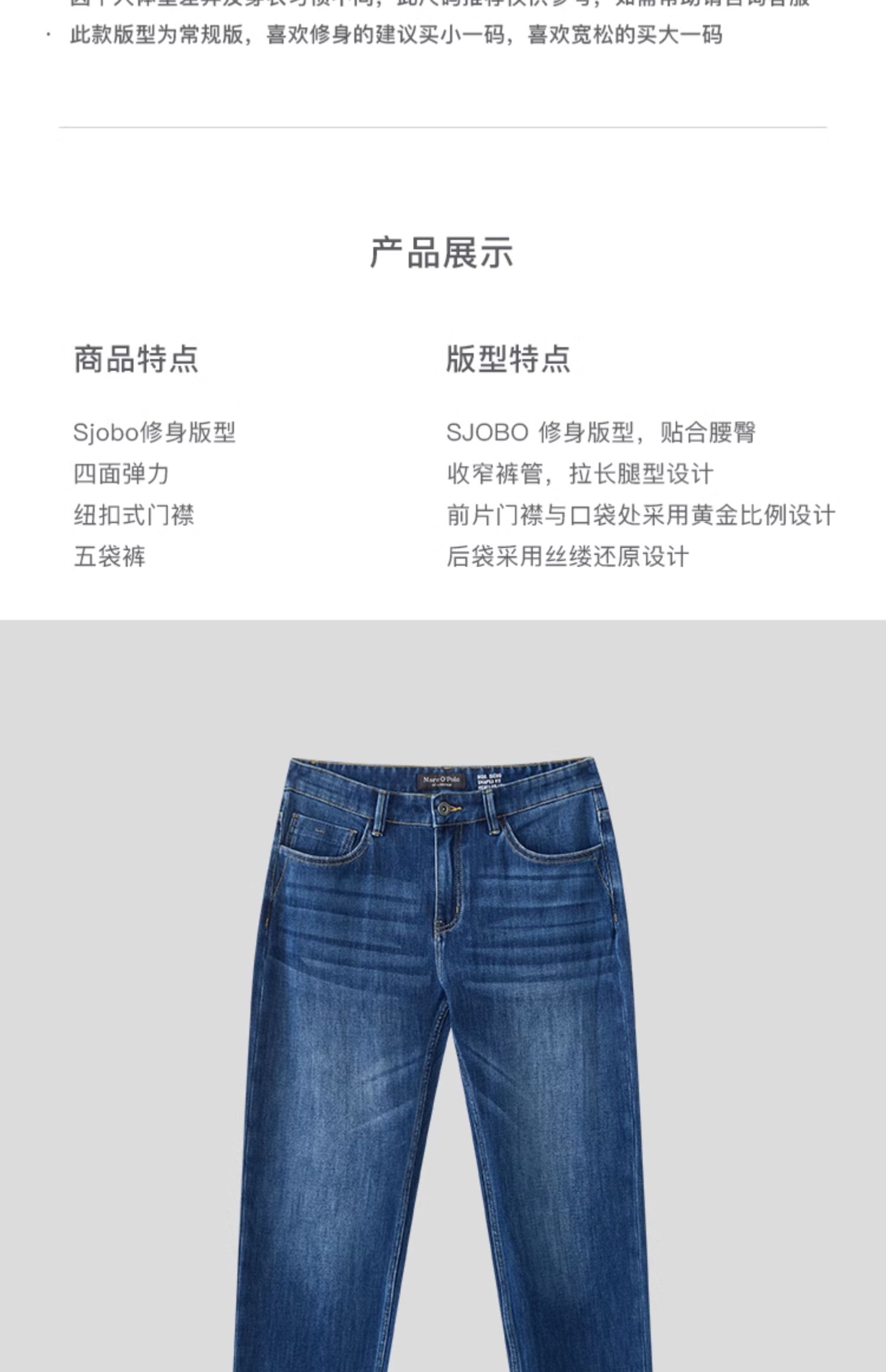 Marc O'Polo/MOP【商场同款】秋季新款四面弹修身水洗牛仔长裤男
