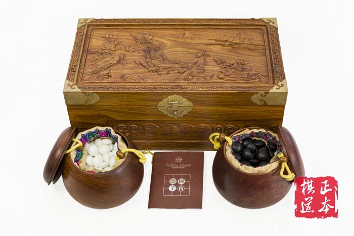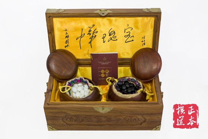 特点:内外盒精选木质坚实,花纹精美的花梨精制而成,全手工打磨双面凸棋子,具有很高的收藏价值。