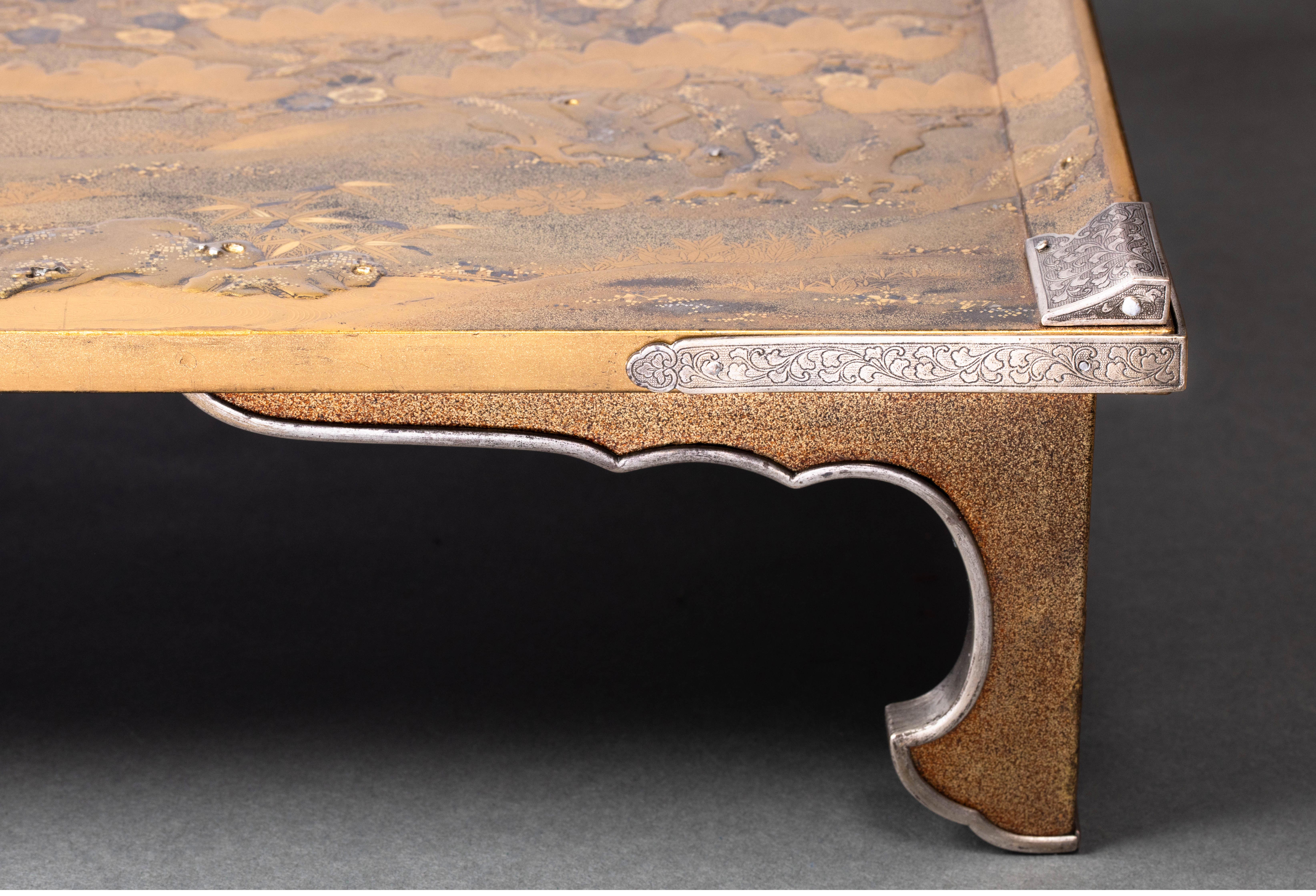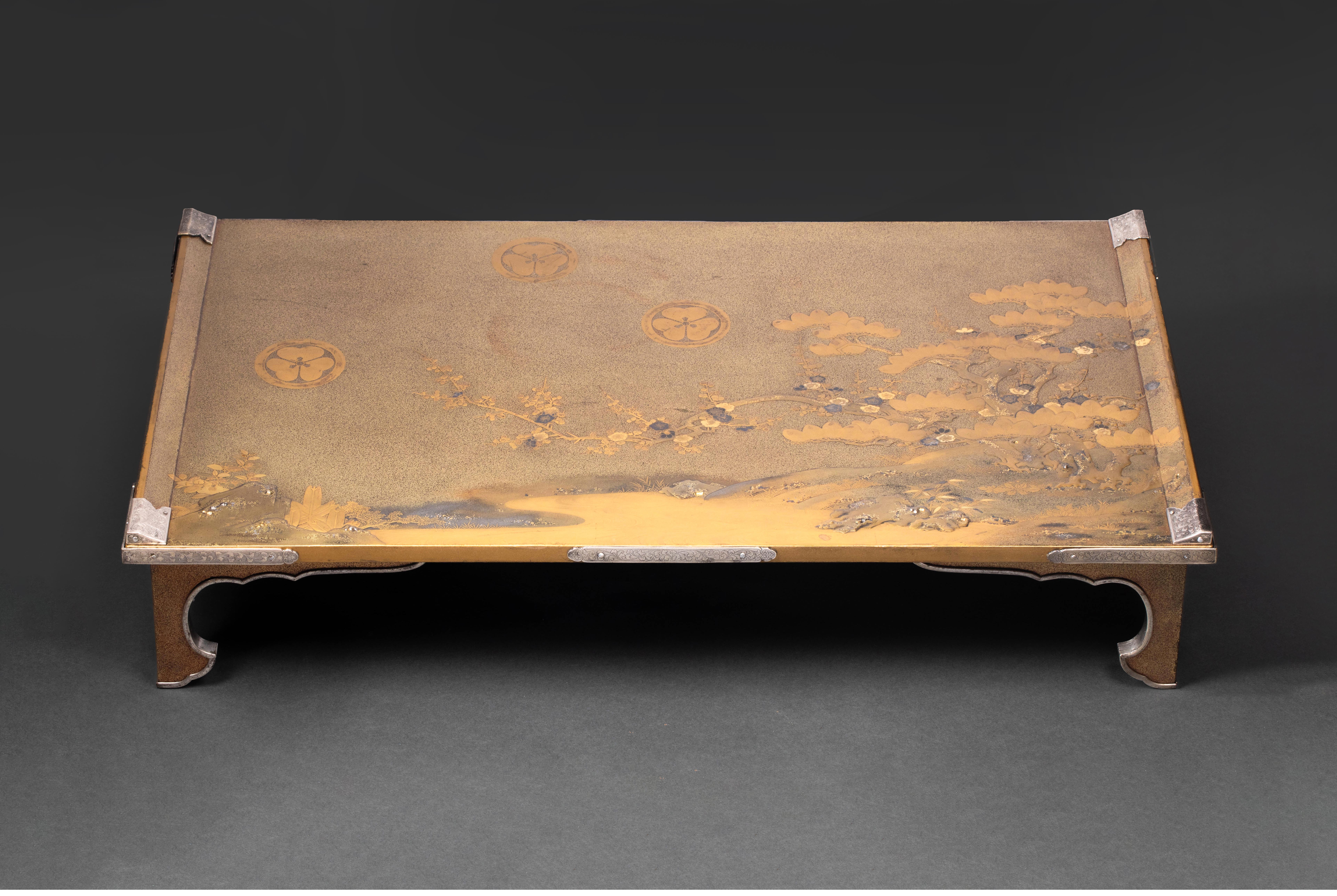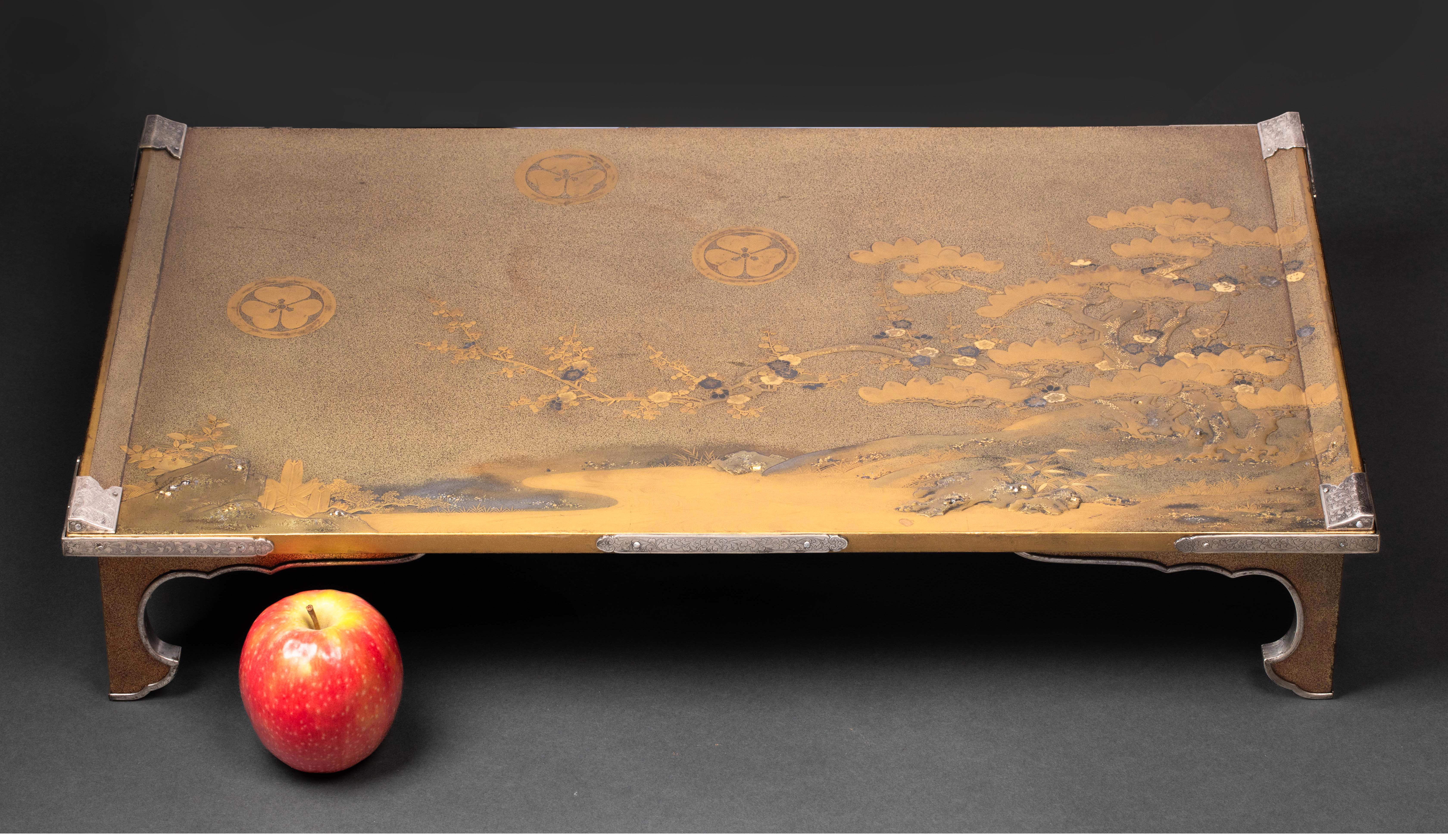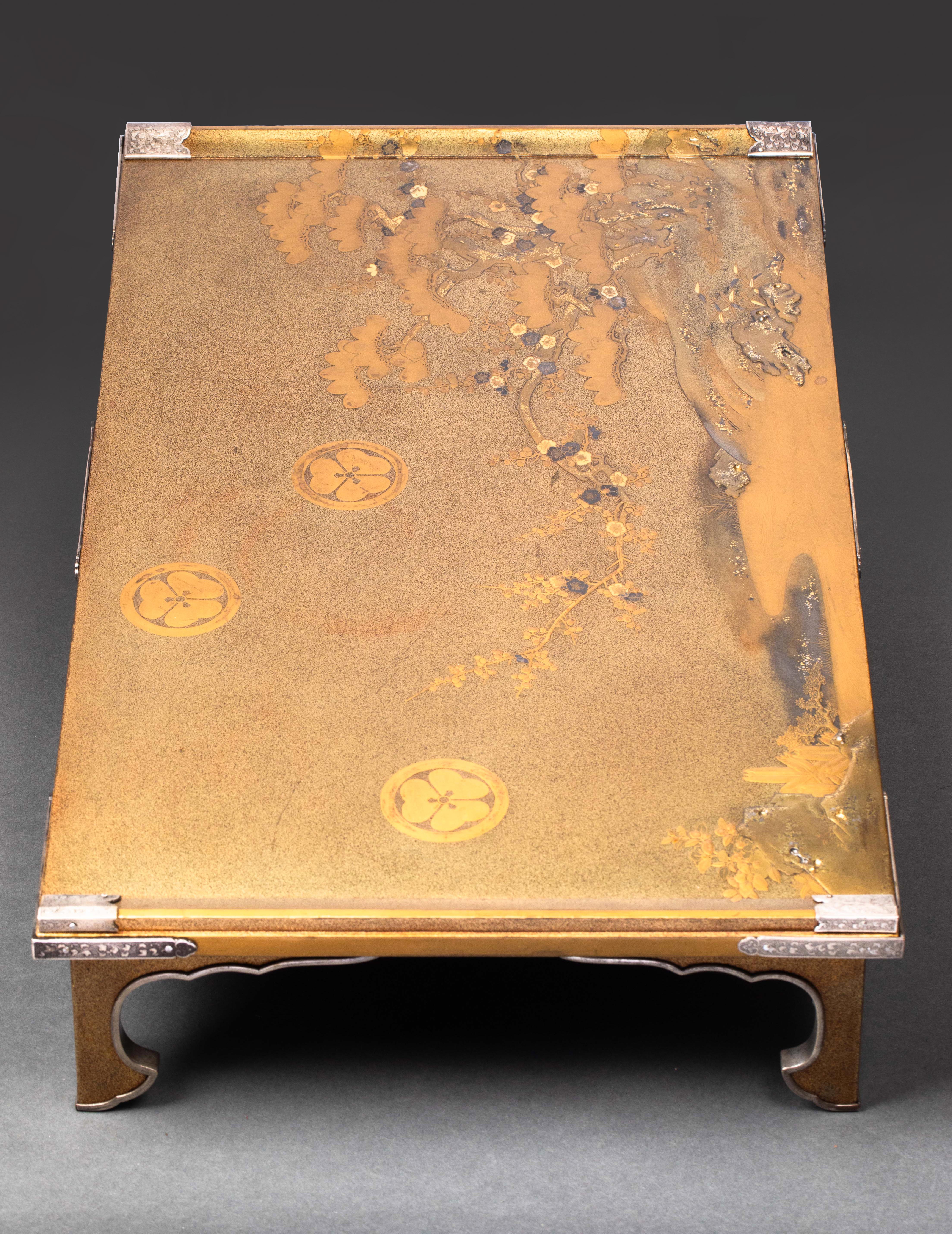 19世纪日本明治时期出品湖畔松梅主题金漆莳绘写字台