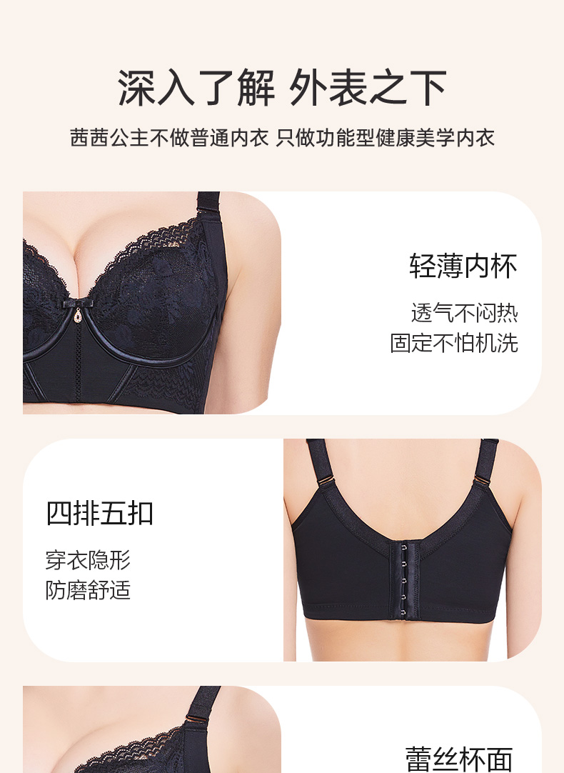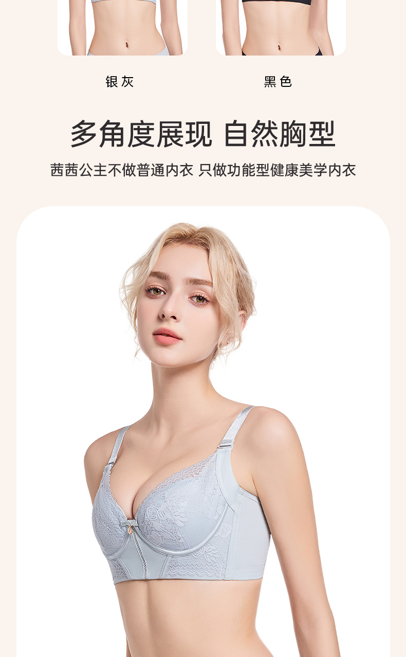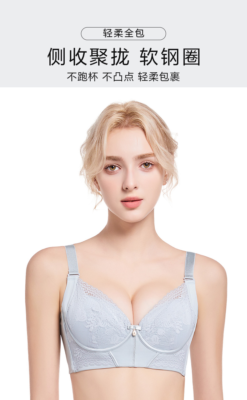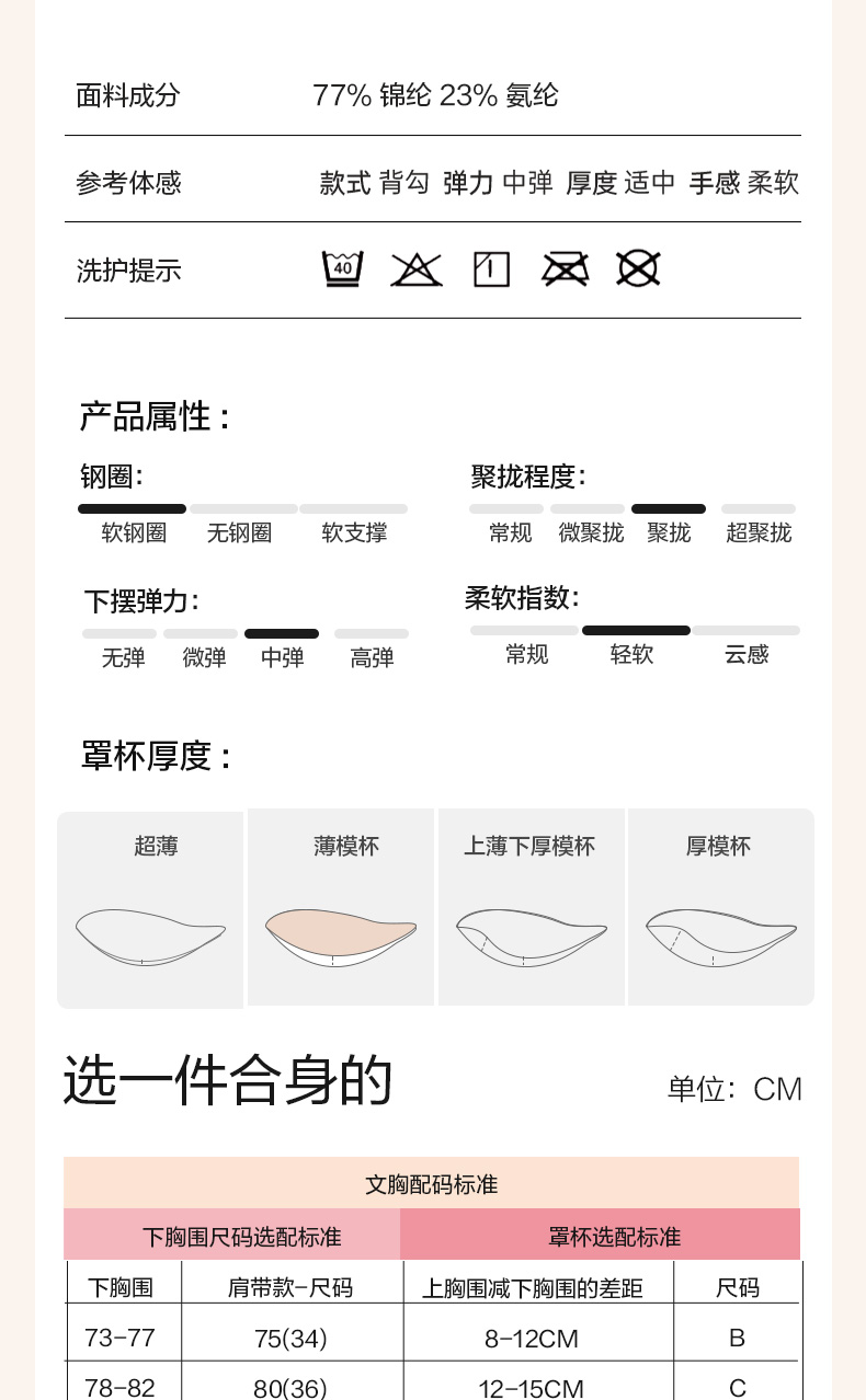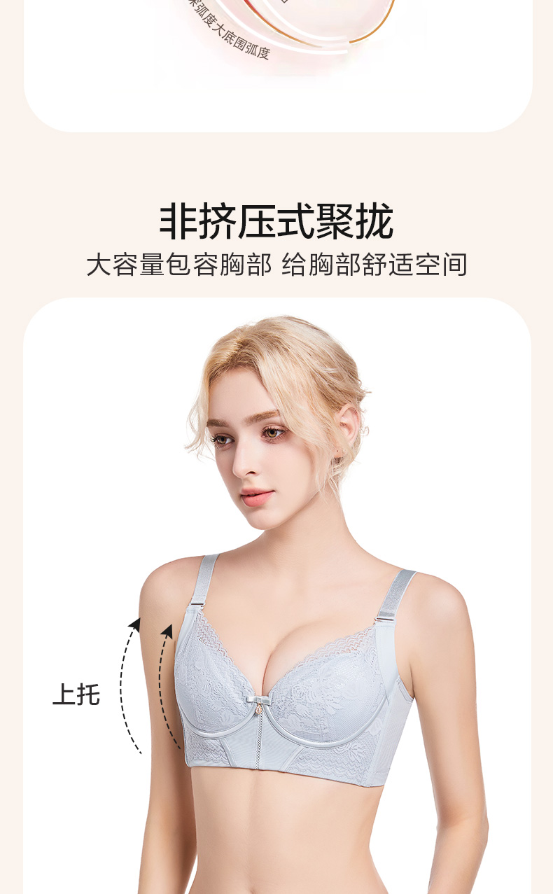 环保透气云感棉,中小胸聚拢显大减少胸部松弛下垂,软钢圈中厚杯,星河云感棉调整型文胸
