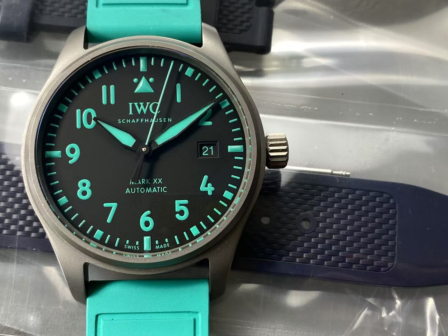 表镜:天然蓝宝石水晶玻璃NOOB official➕IWC万国 IW328210