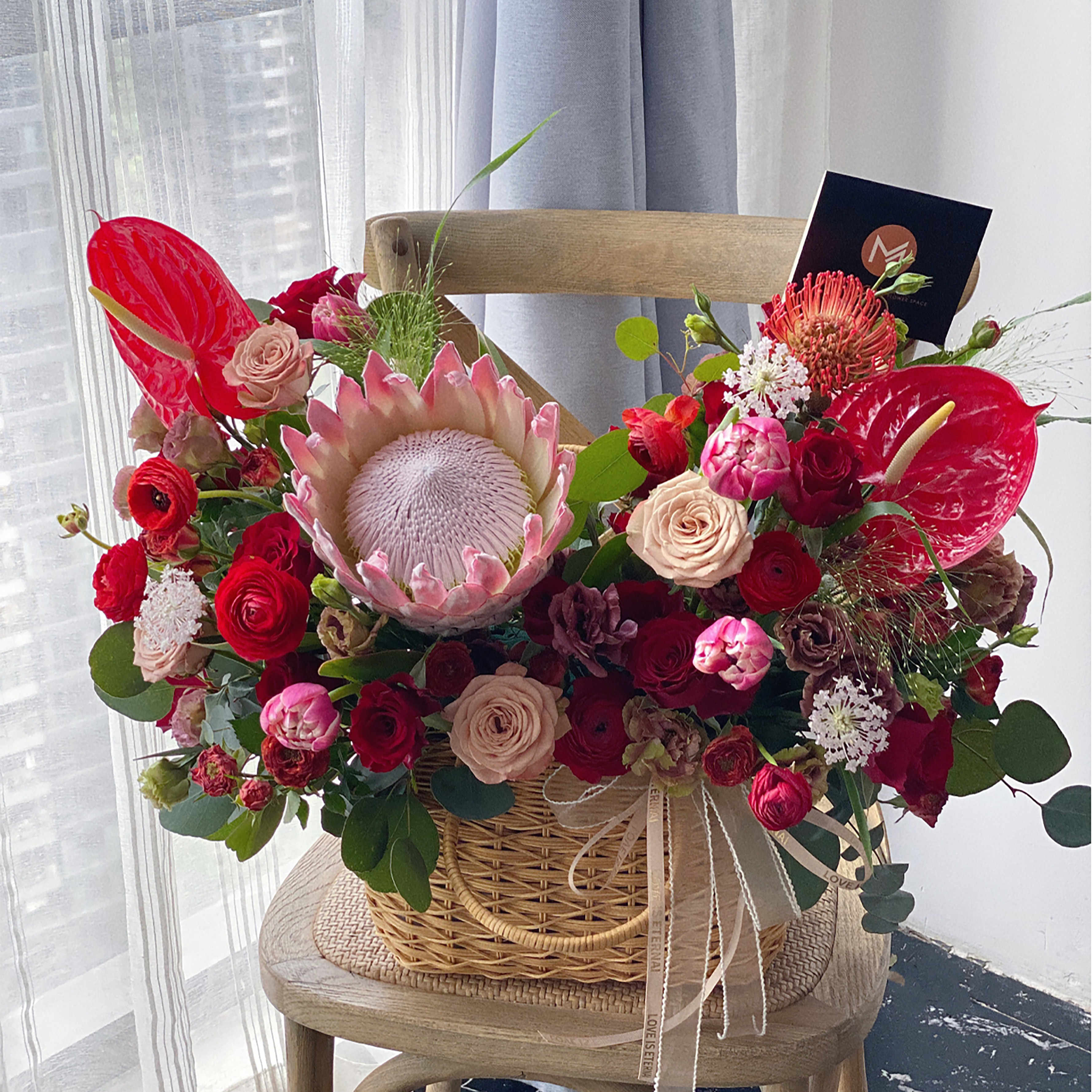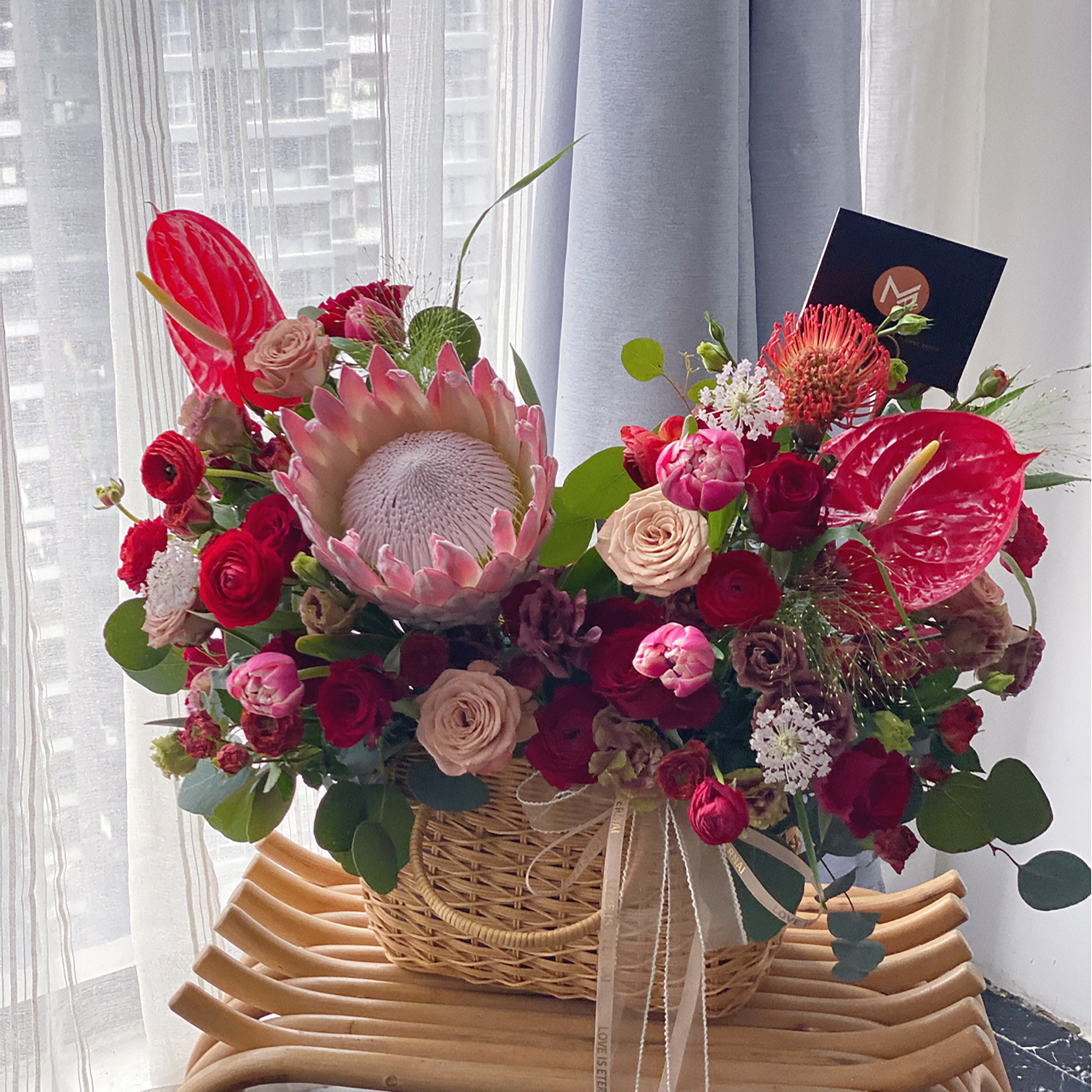 《她的花园》多头紫罗兰玫瑰朱小姐玫瑰蝴蝶兰马蹄莲抱抱桶
