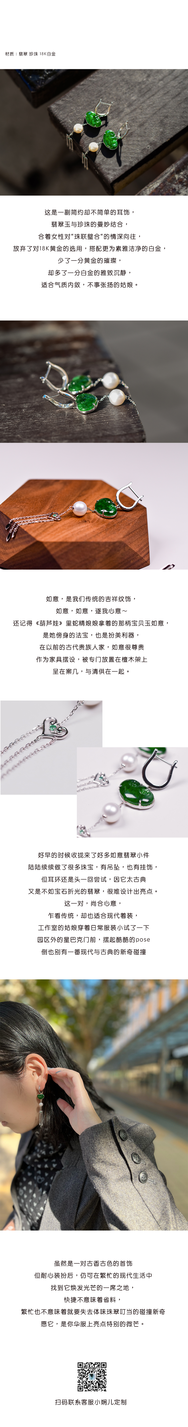 如意翡翠珍珠流苏耳环【定制】