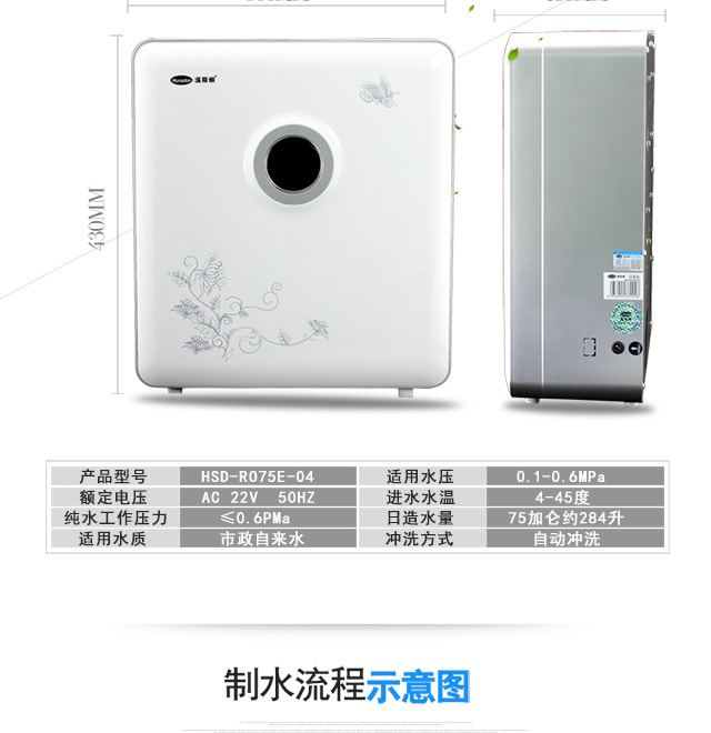 汉斯顿(Hunsdon) HSD-RO75G-04家用RO反渗透直饮机 纯净水口感纯正