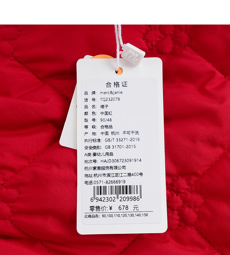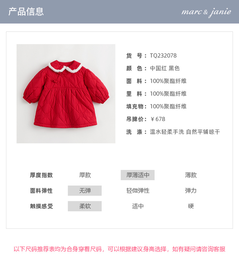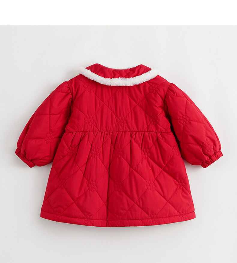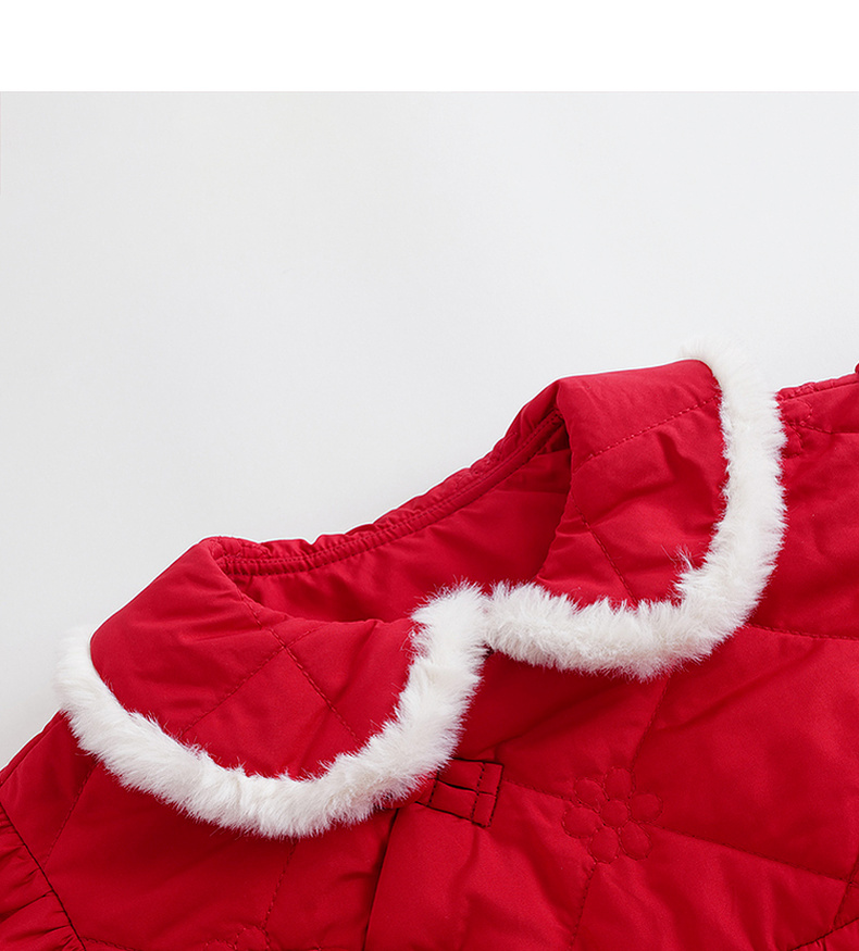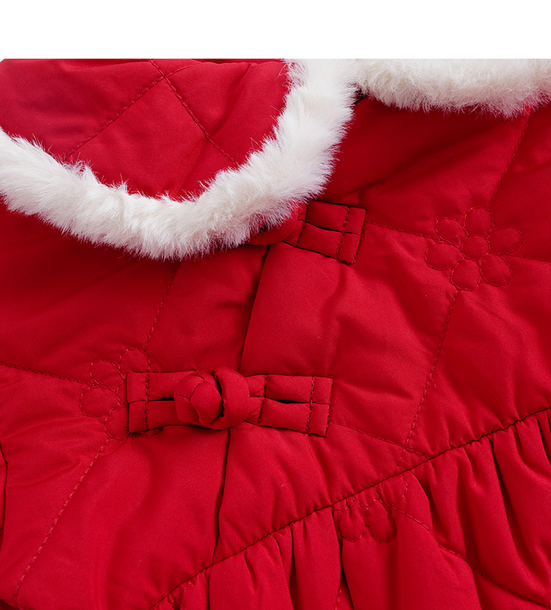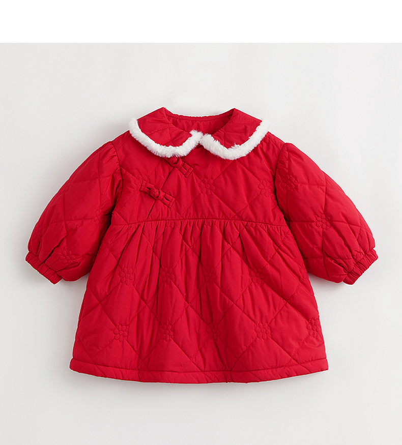 马克珍妮秋冬装新款 女童娃娃领盘扣夹棉连衣裙 232078