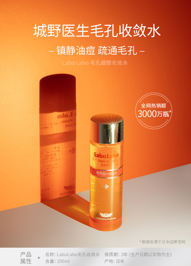 【中欧班列精选】【原装进口】城野医生毛孔收敛水收缩补水保湿化妆水100ml