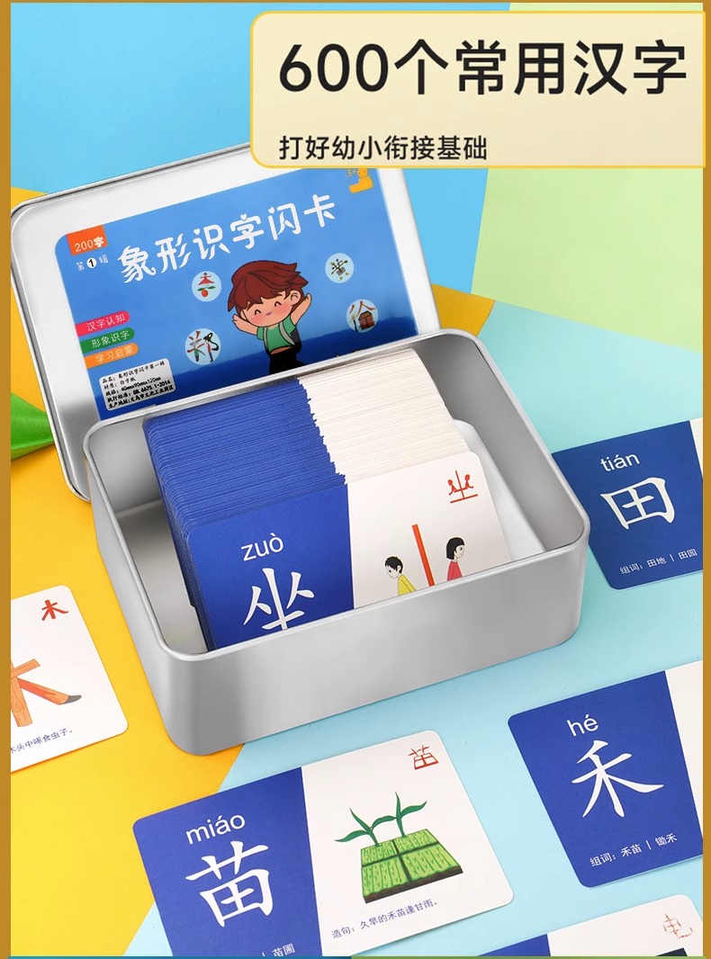 【轻松记住600字,全套三盒装】儿童识字卡600字幼儿园启蒙宝宝早教象形汉字认字闪卡玩具卡牌