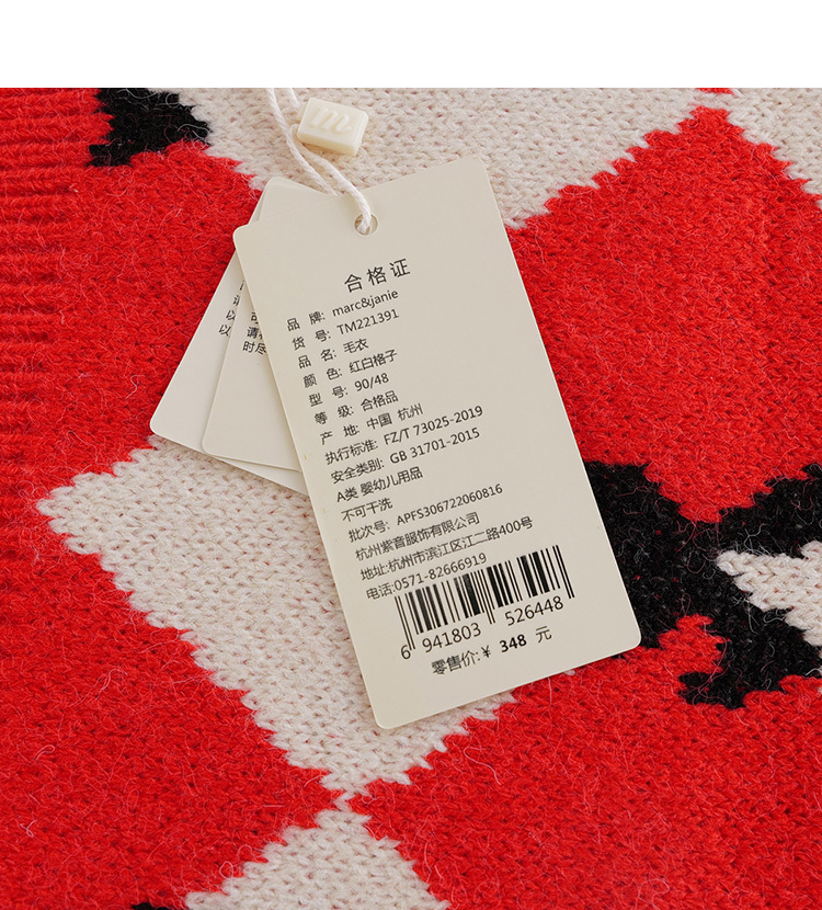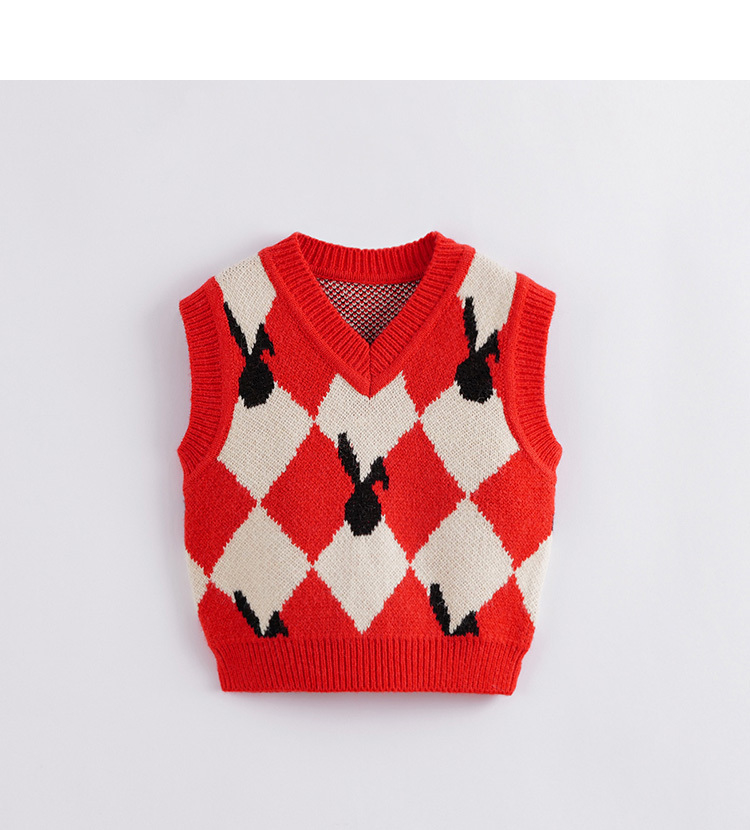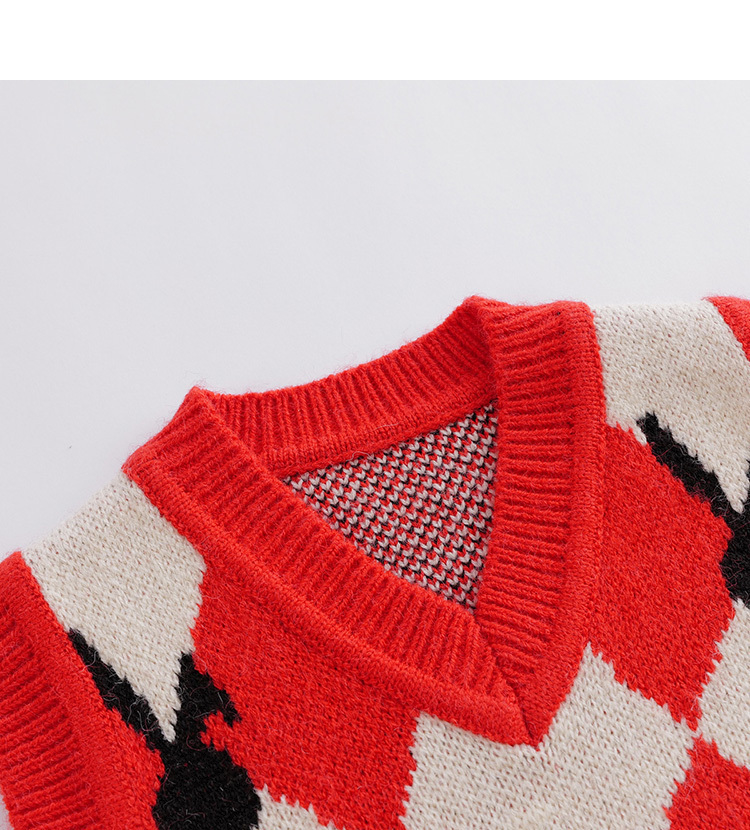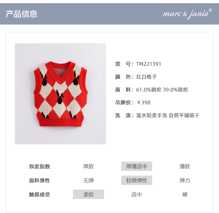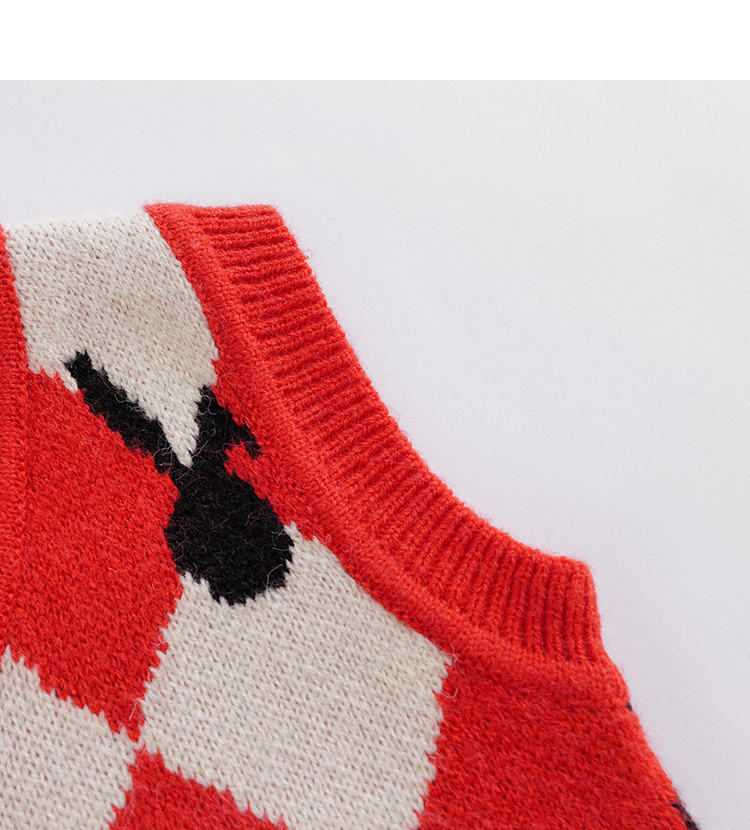 【柔蓝绒】马克珍妮秋装新款 女童红白菱形格针织马甲221391