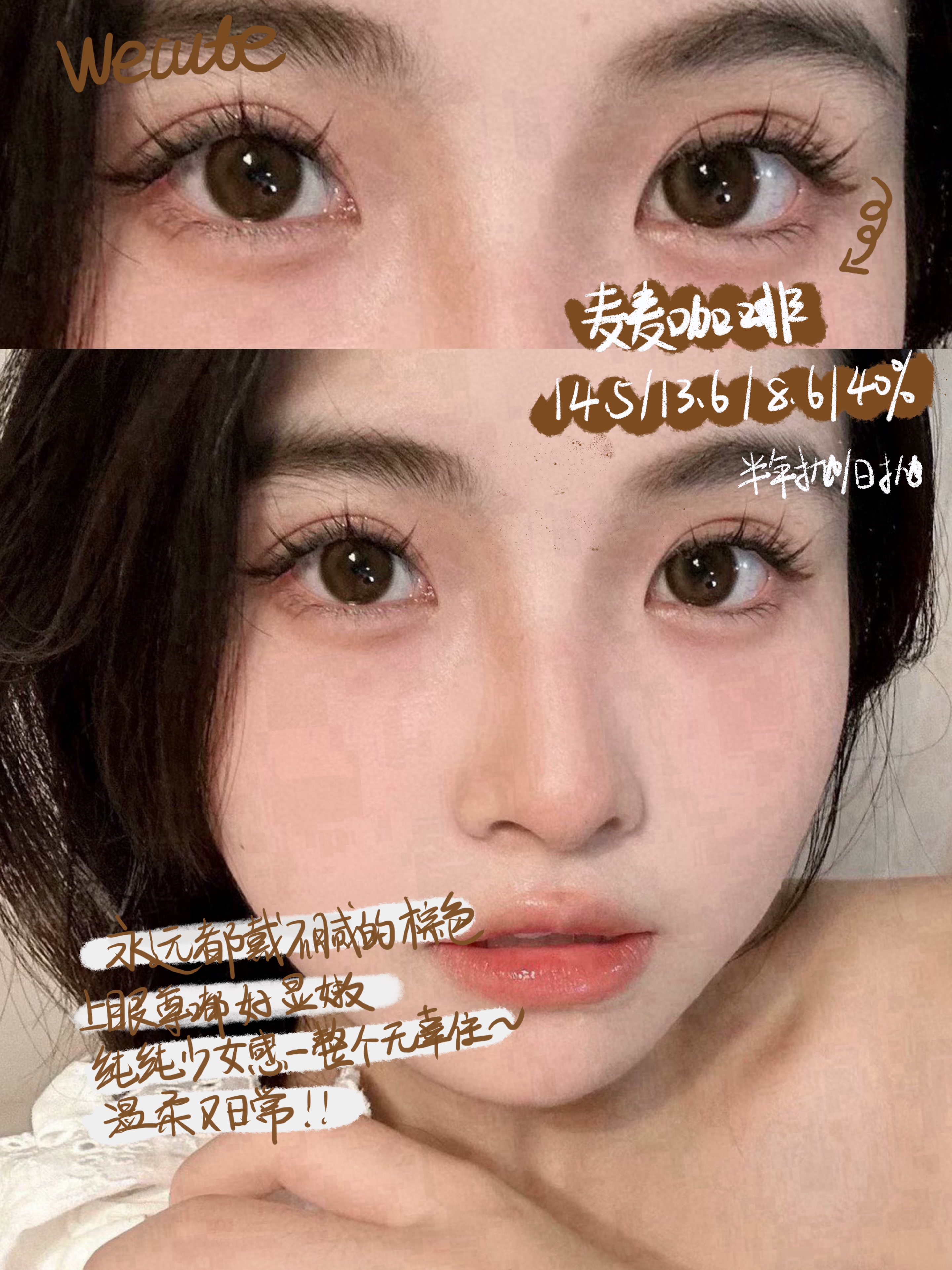 Wecute日抛 ·麦麦咖啡 14.5mm白狮参考着色中大直径|日抛 一盒十片装