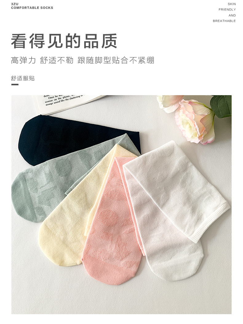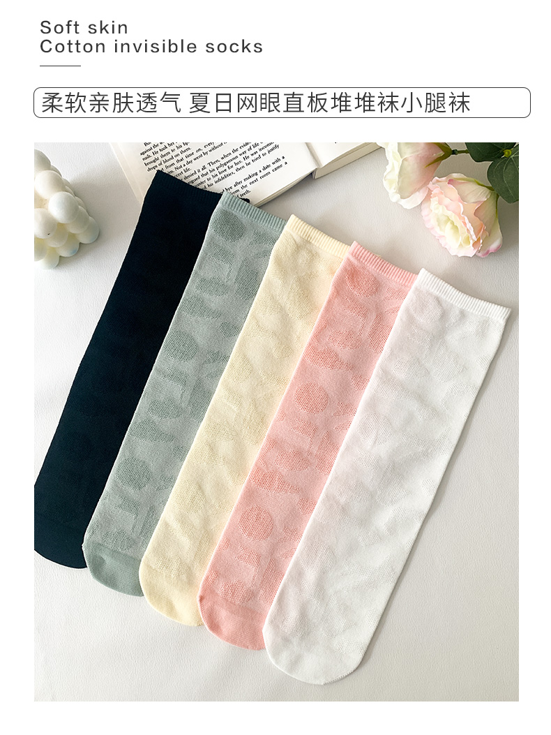 足装秀24春夏新女士小腿袜柔软亲肤透气简约风网眼直板堆堆女袜子
