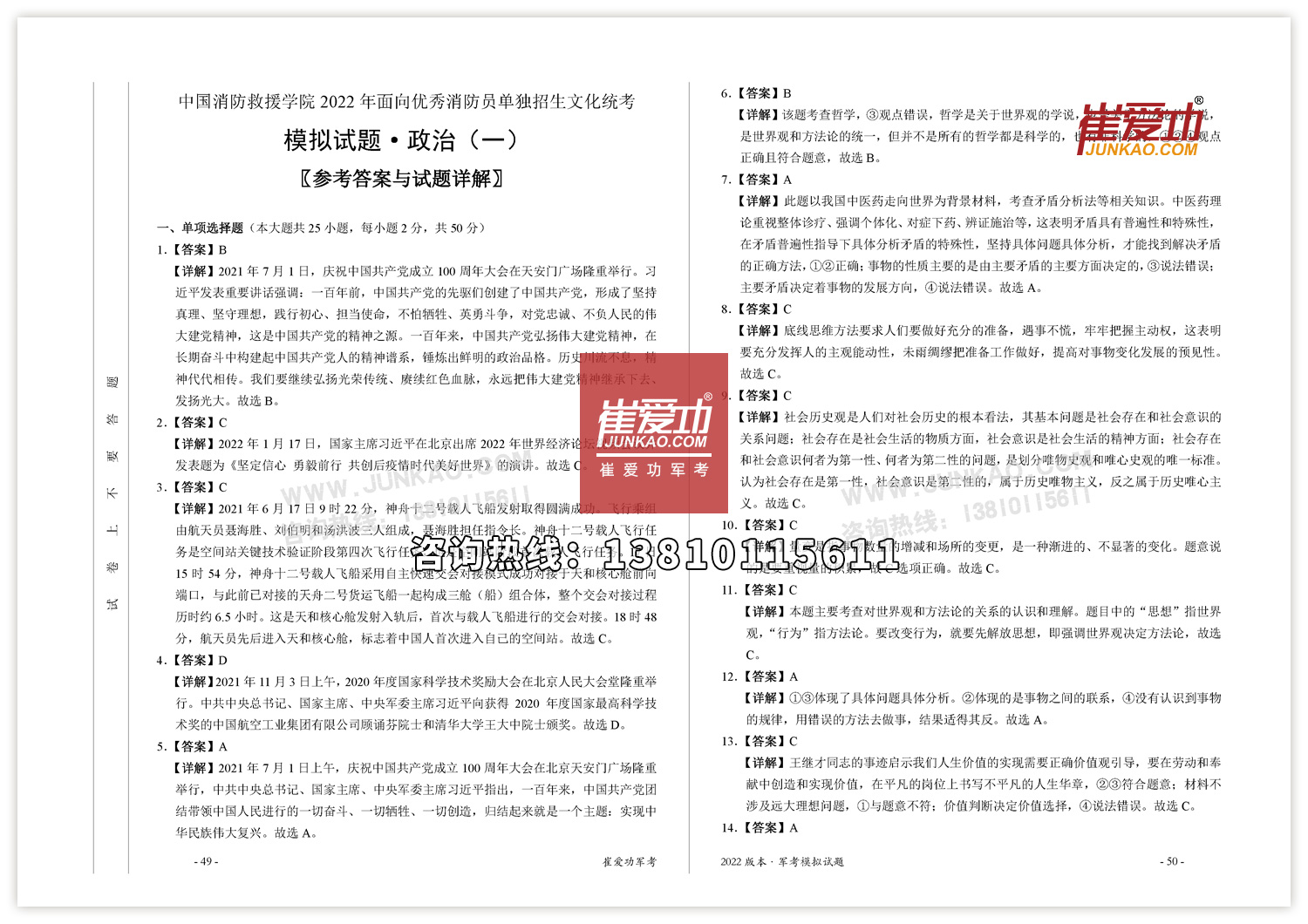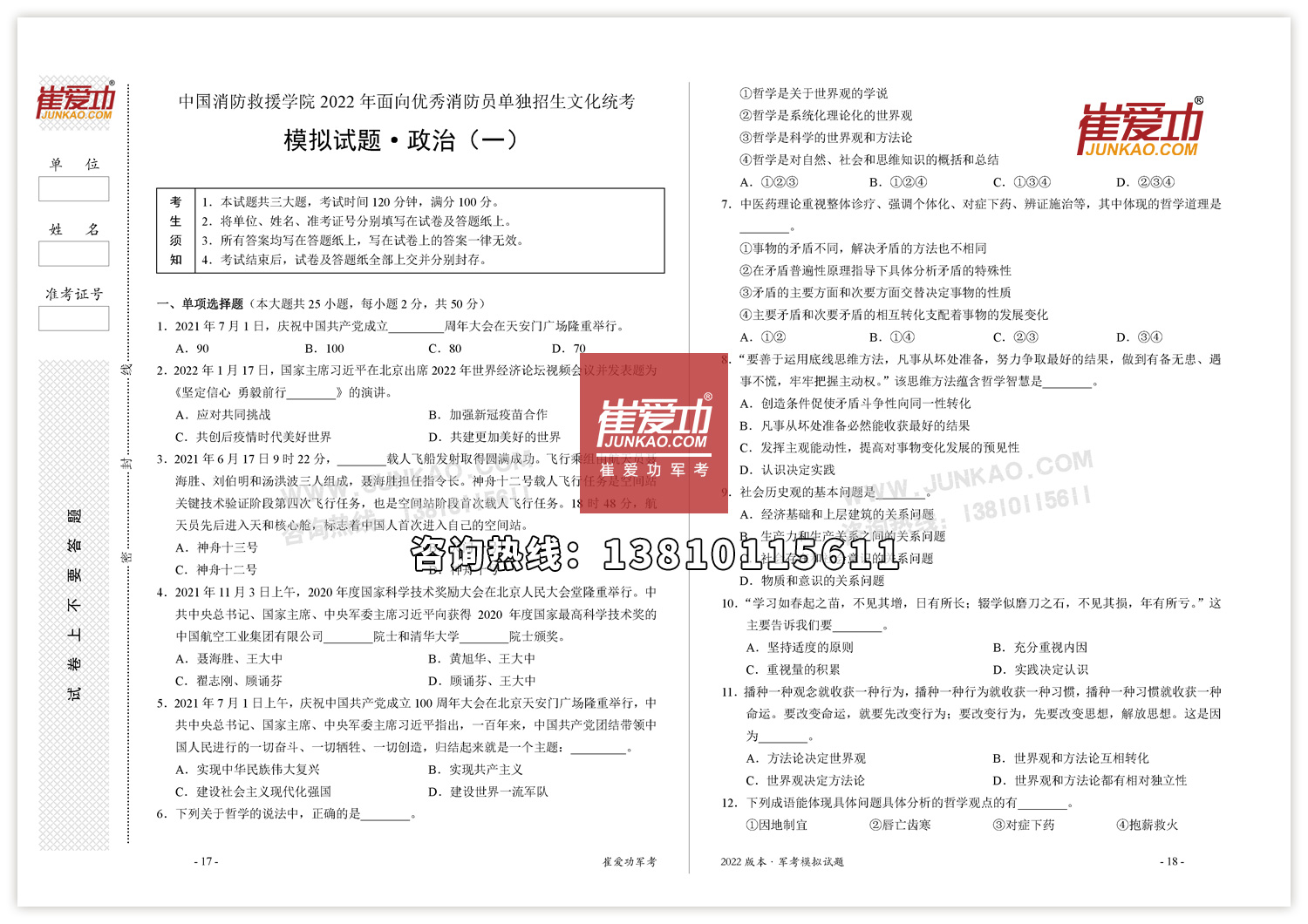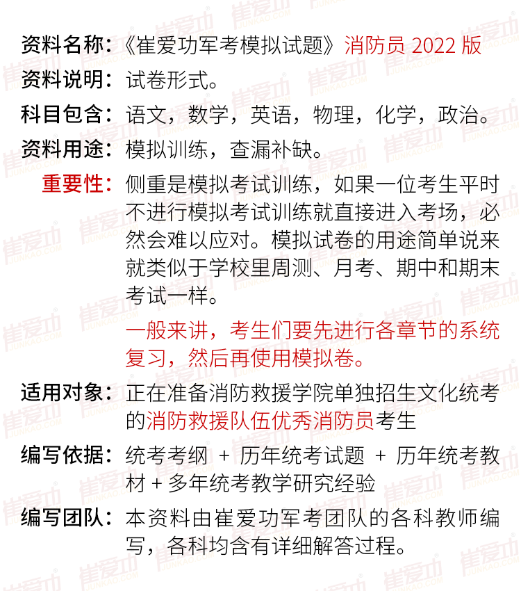 【消防员】2022版崔爱功《军考模拟试题》消防系列考消防救援学院
