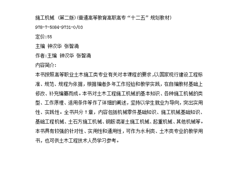 施工机械 (第二版)(普通高等教育高职高专“十二五”规划教材)