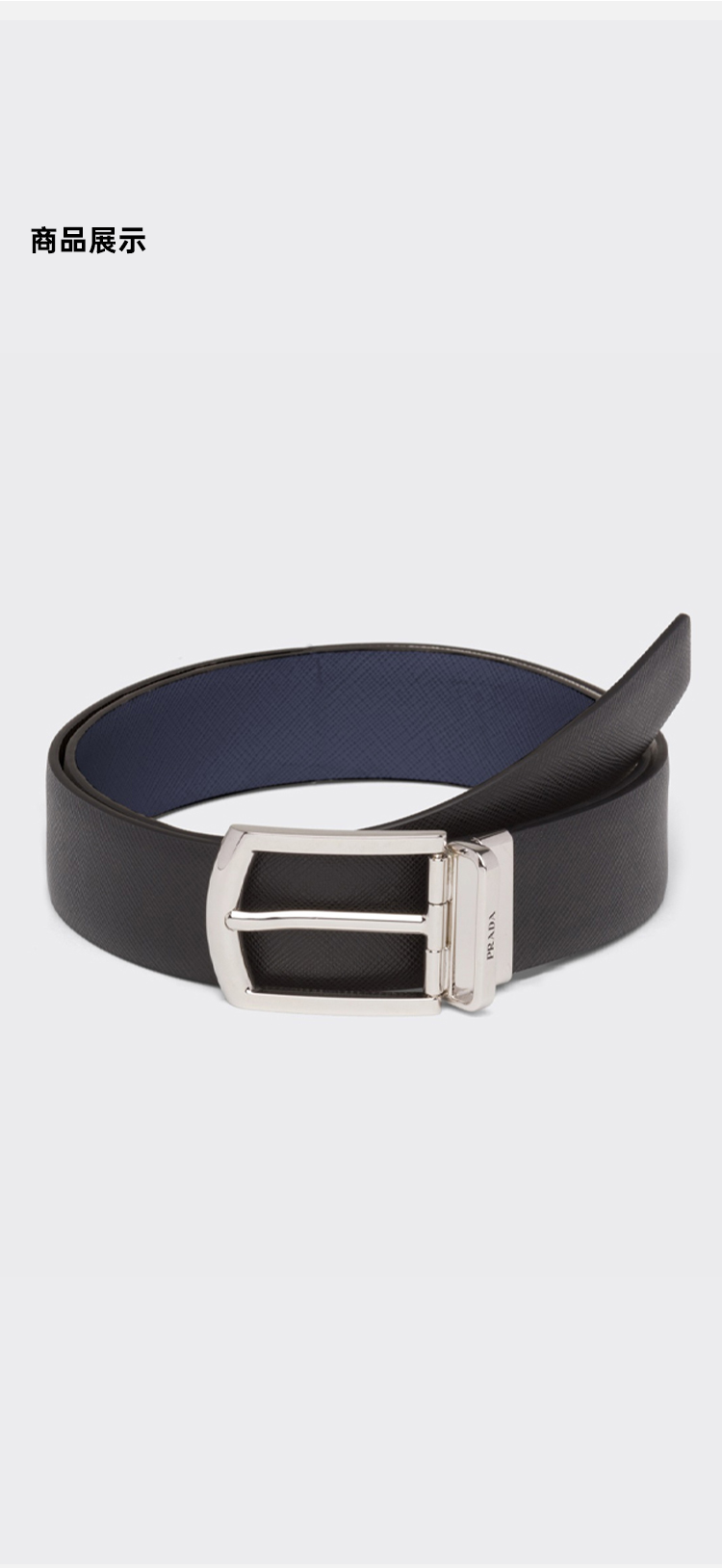 【四】PRADA 普拉达 男士双面 Saffiano 十字纹皮革腰带 黑色 2CC468 053 F0RD7