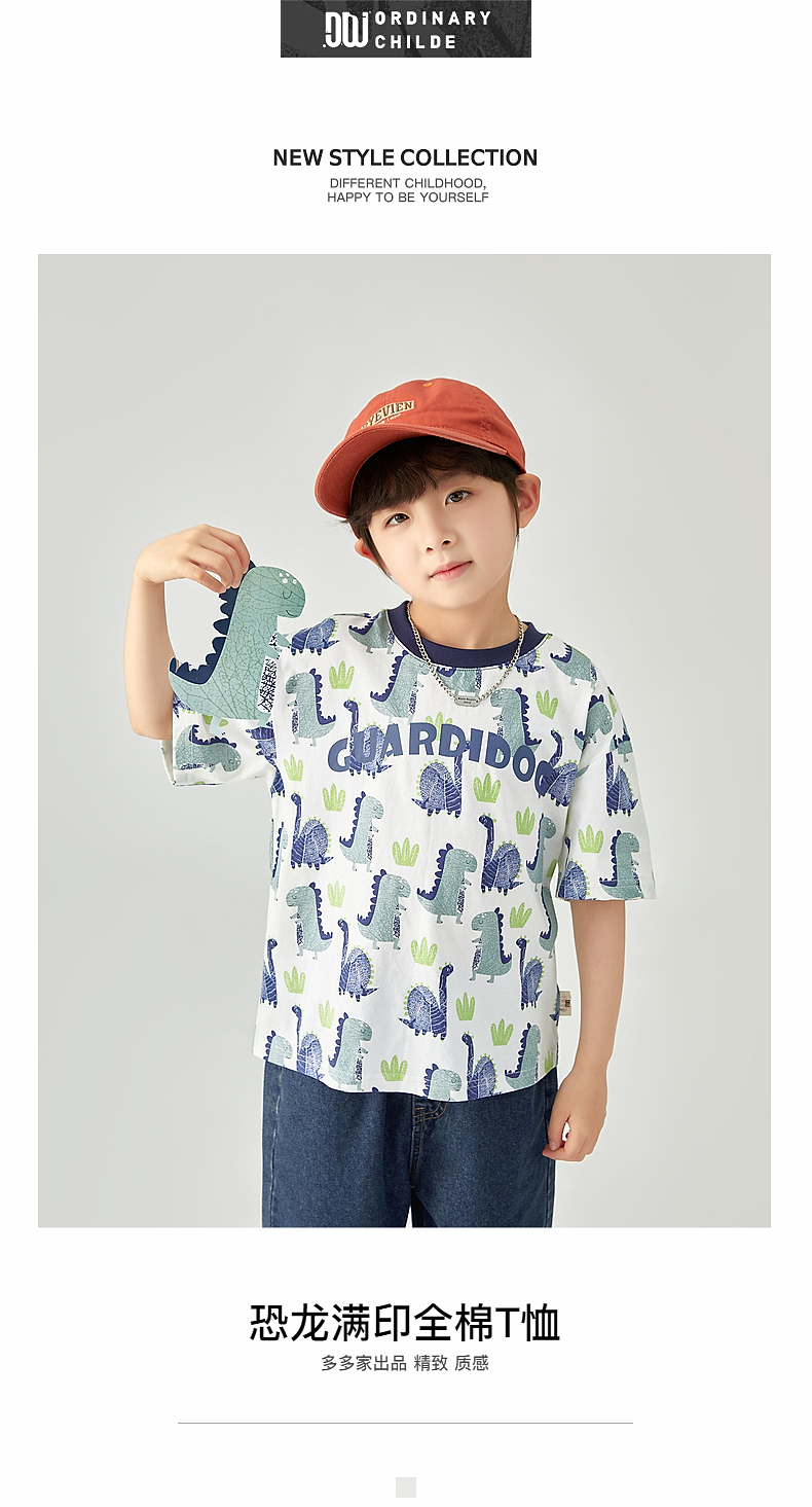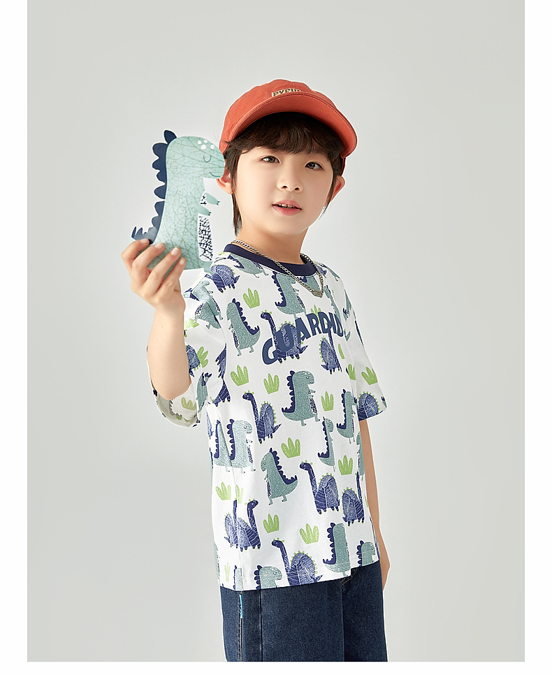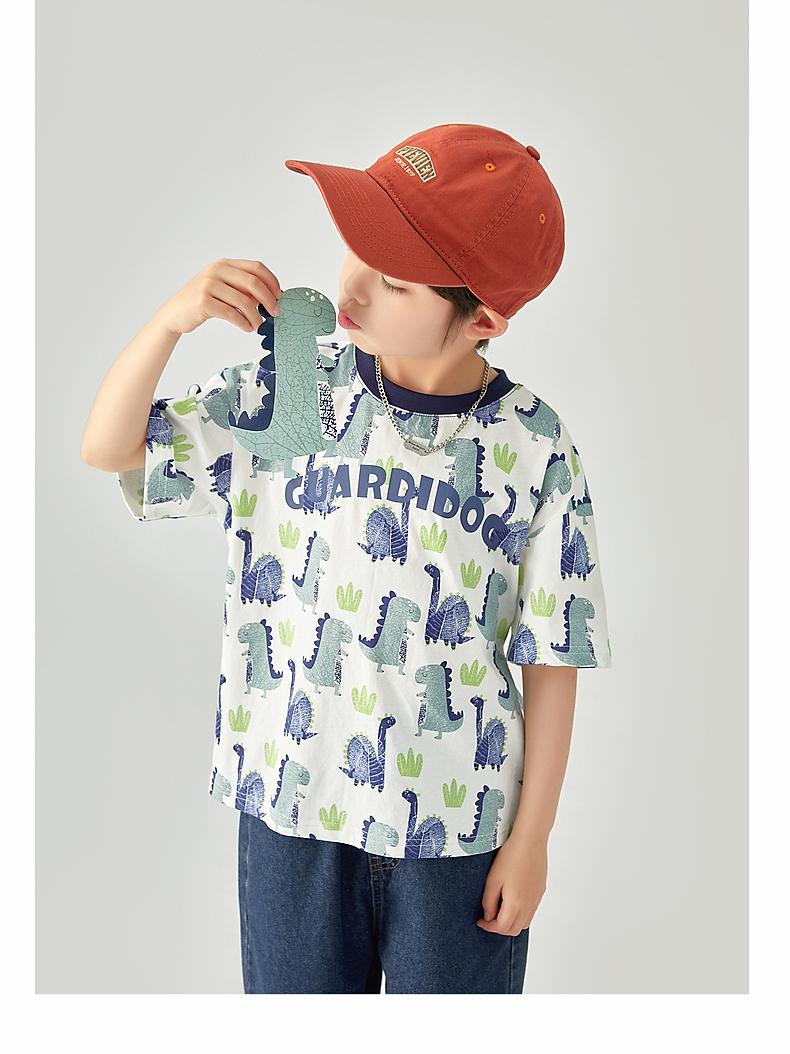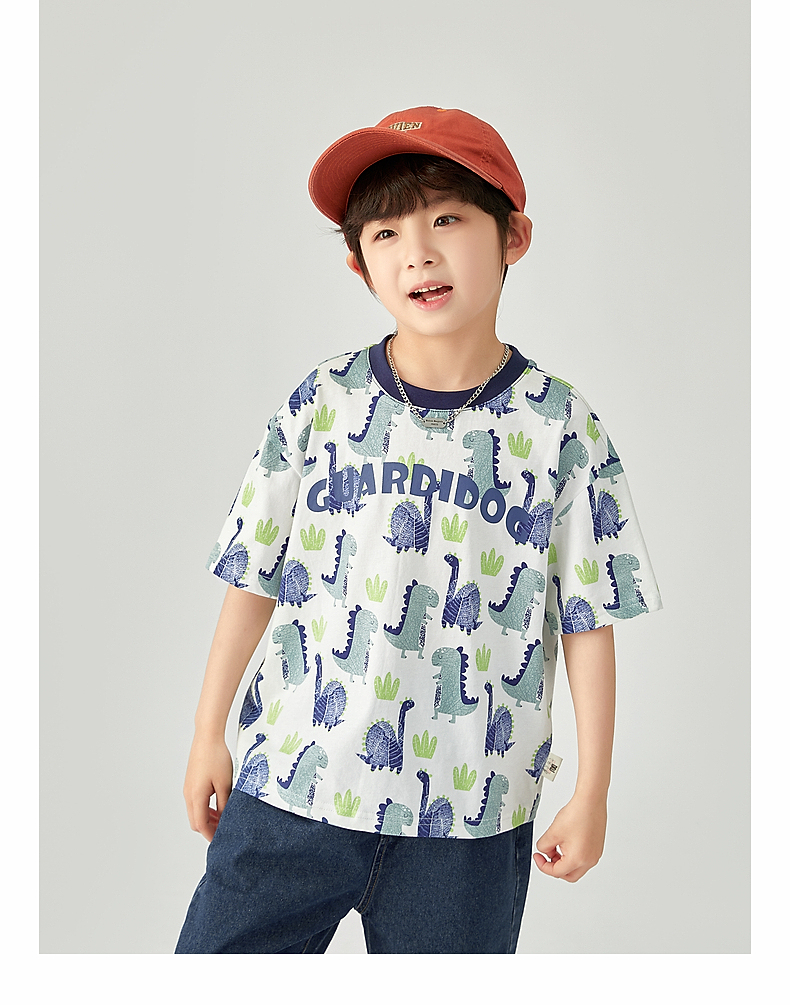 【团购价29.9-39.9】多多家 男童T恤2024夏季纯棉恐龙满印短袖儿童中大童夏款上衣9382