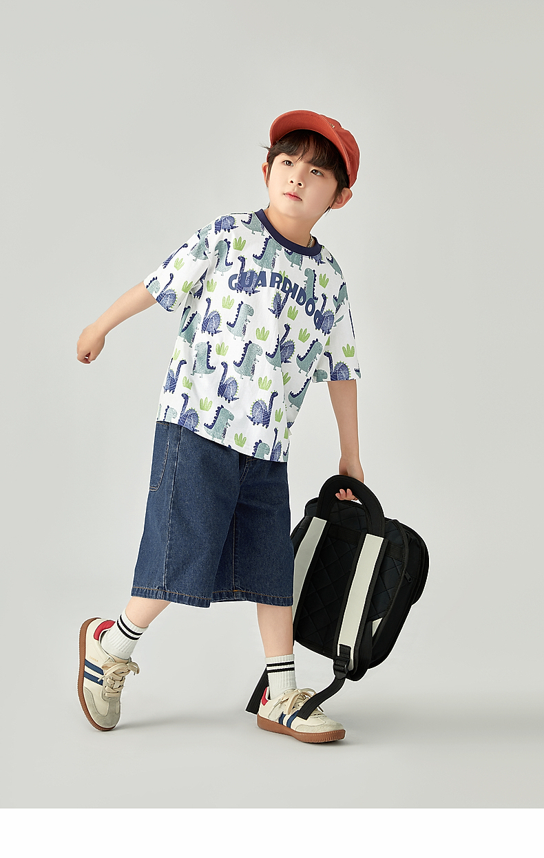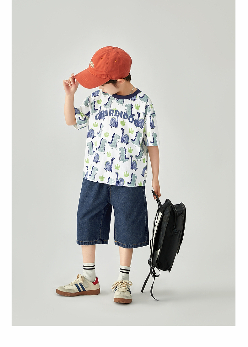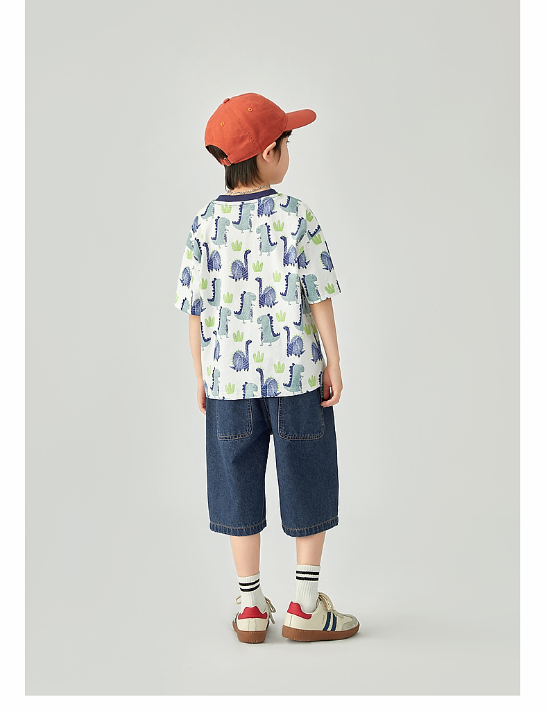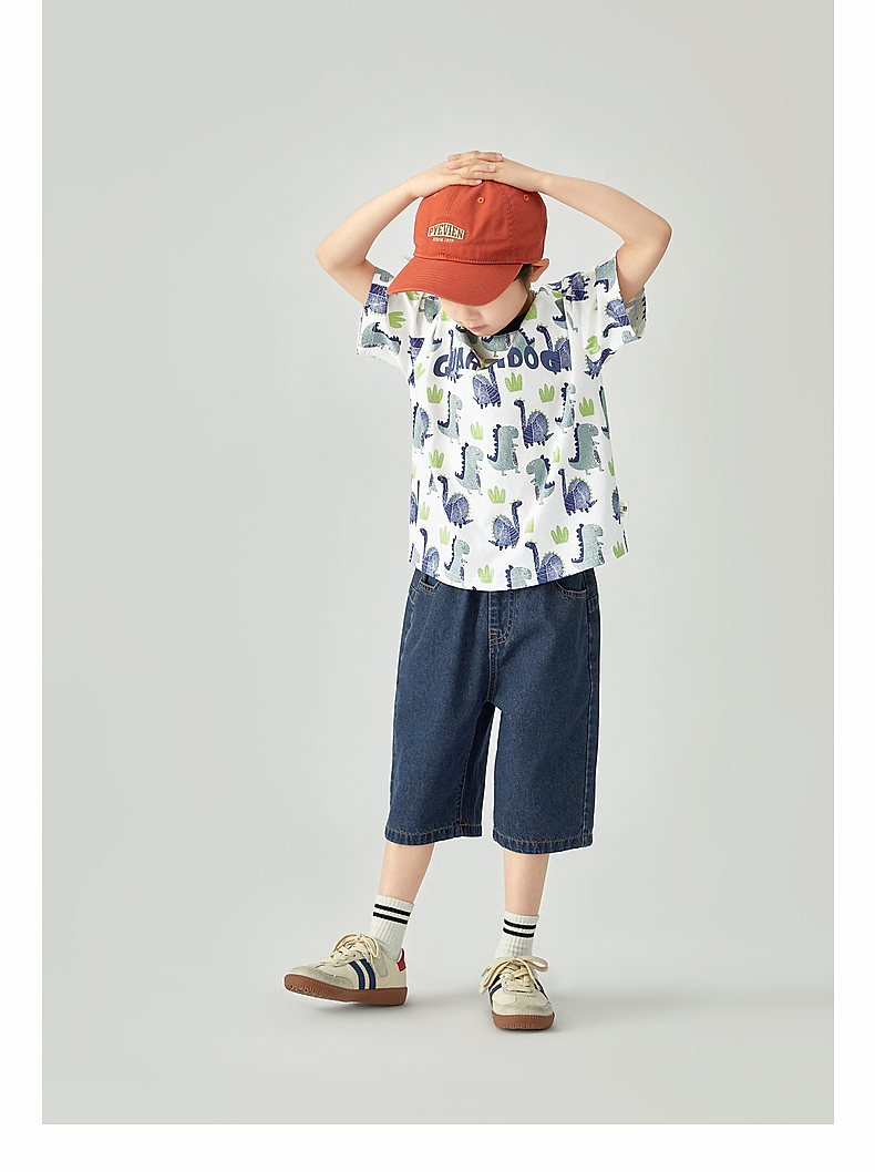 【团购价29.9-39.9】多多家 男童T恤2024夏季纯棉恐龙满印短袖儿童中大童夏款上衣9382