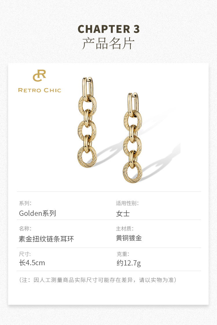 【万妮达&刘忻同款】Retro Chic 意大利复古创意饰品 素金扭纹套装