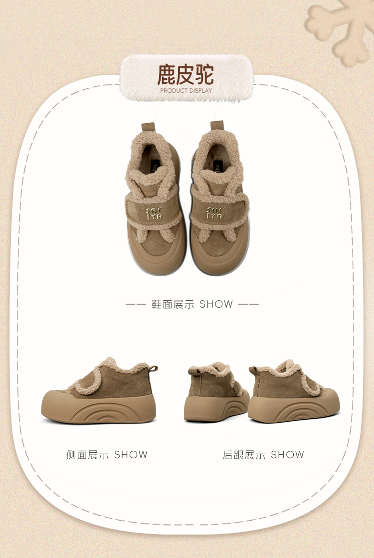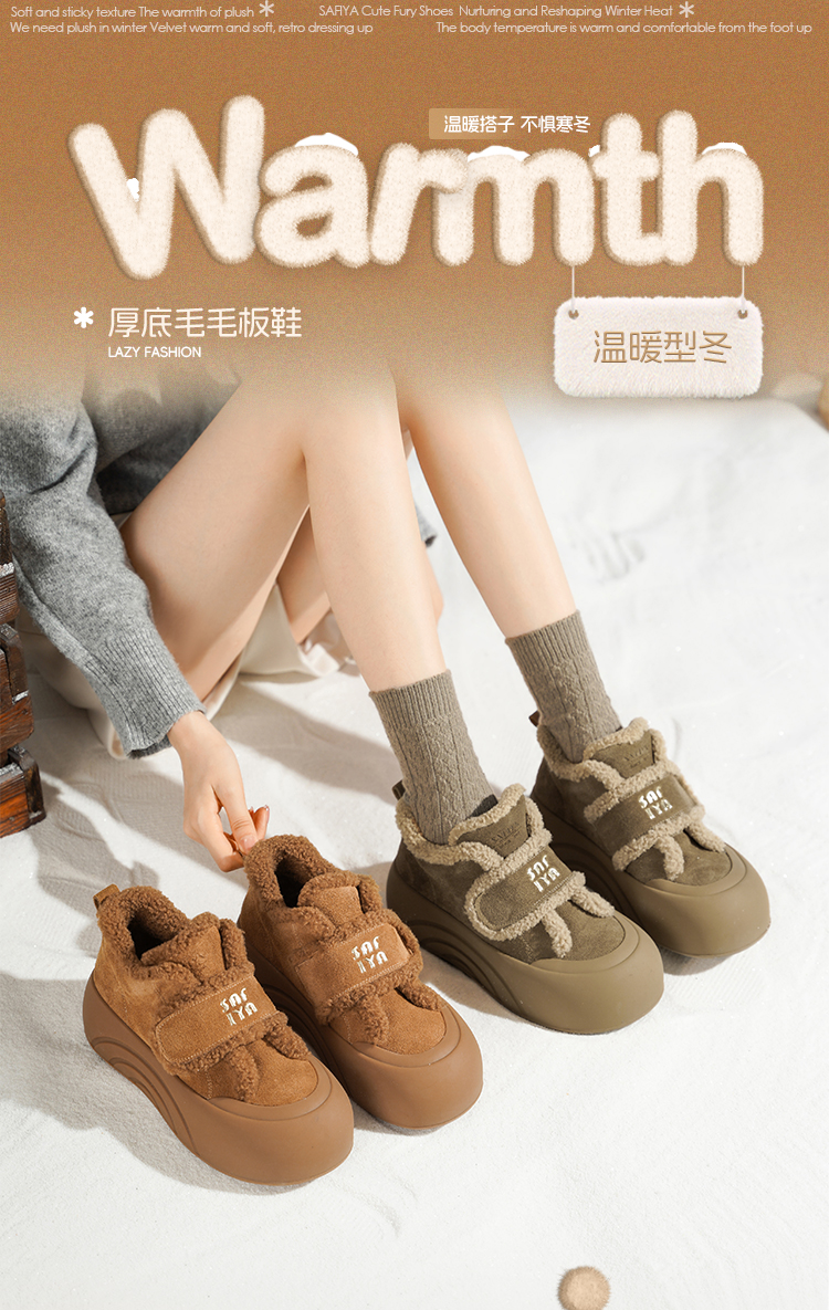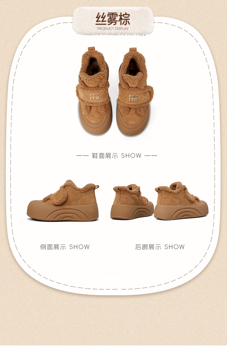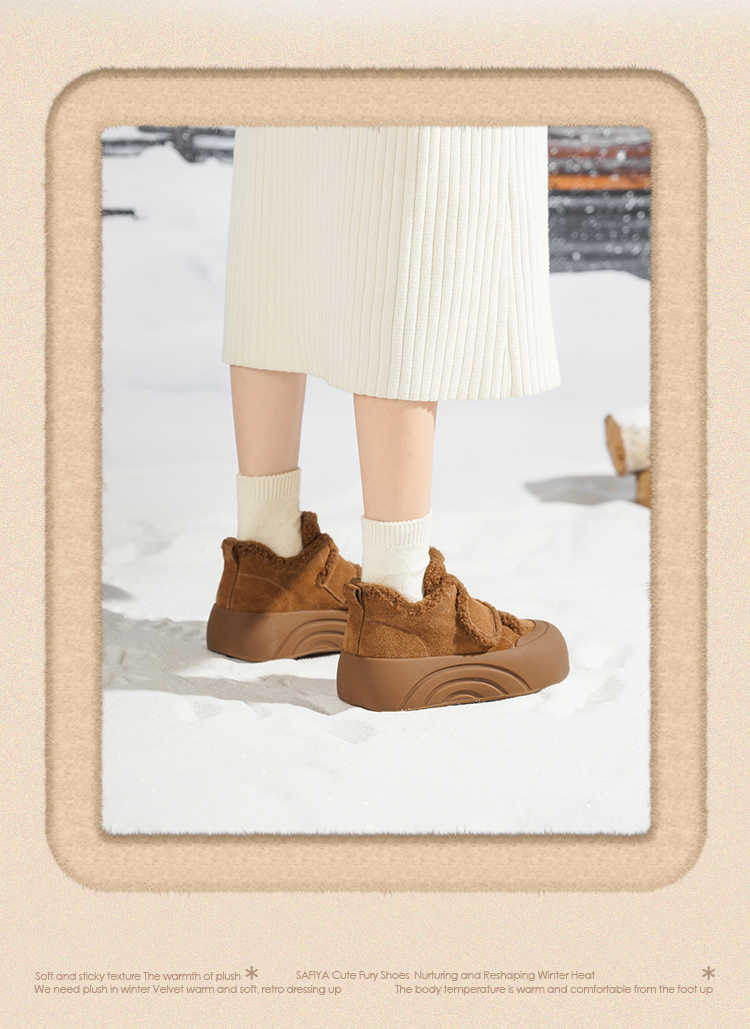 Safiya/索菲娅魔术贴高帮外穿加绒保暖松糕丑萌厚底毛毛板鞋SFD411A209