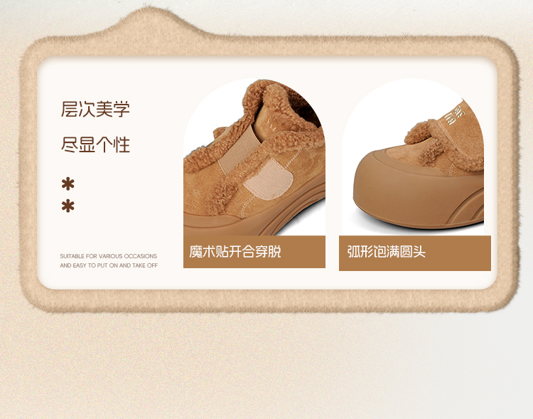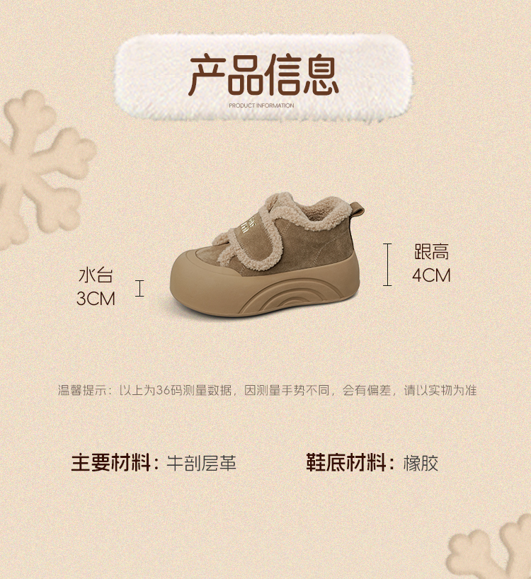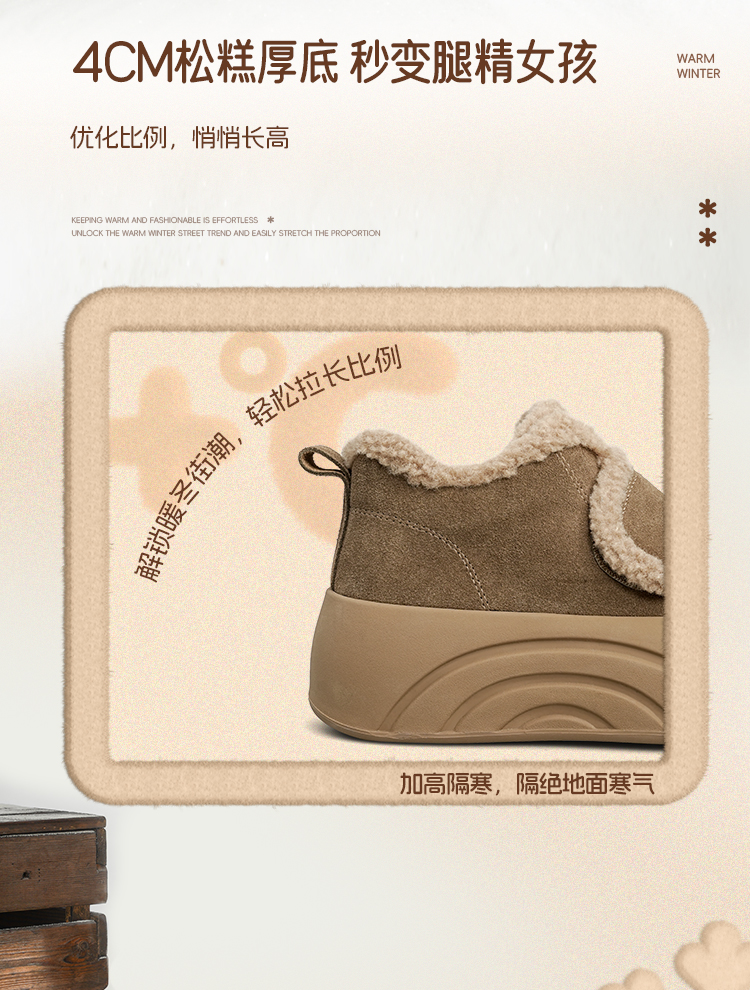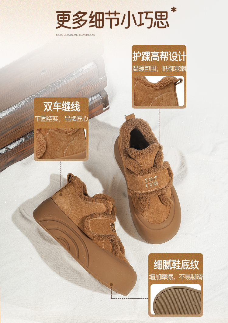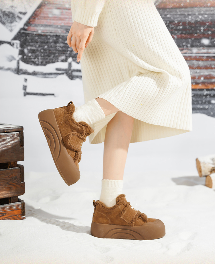 Safiya/索菲娅魔术贴高帮外穿加绒保暖松糕丑萌厚底毛毛板鞋SFD411A209