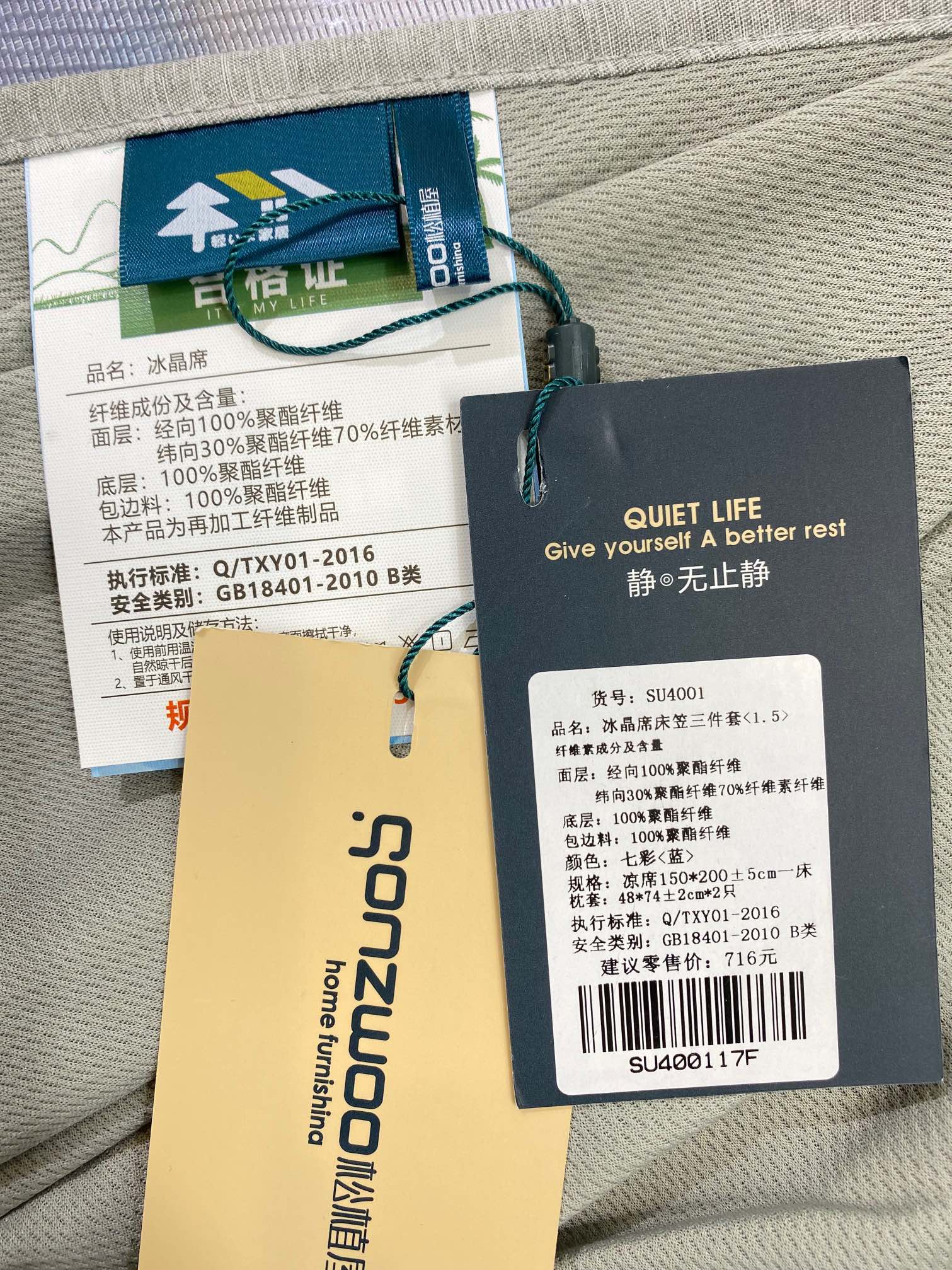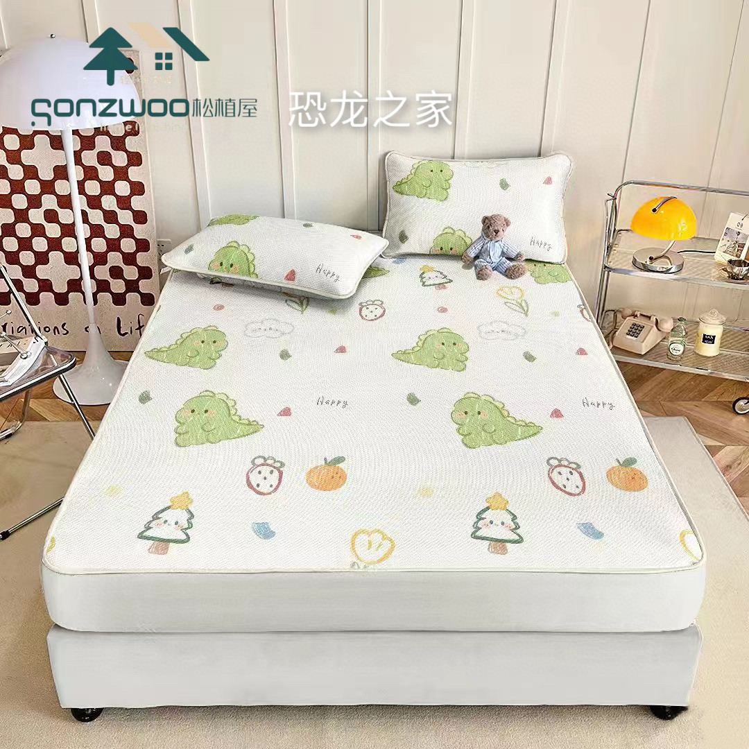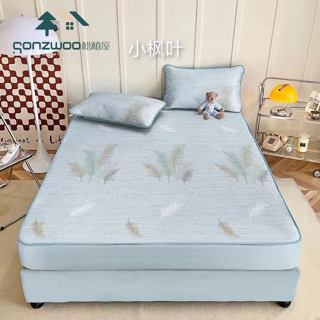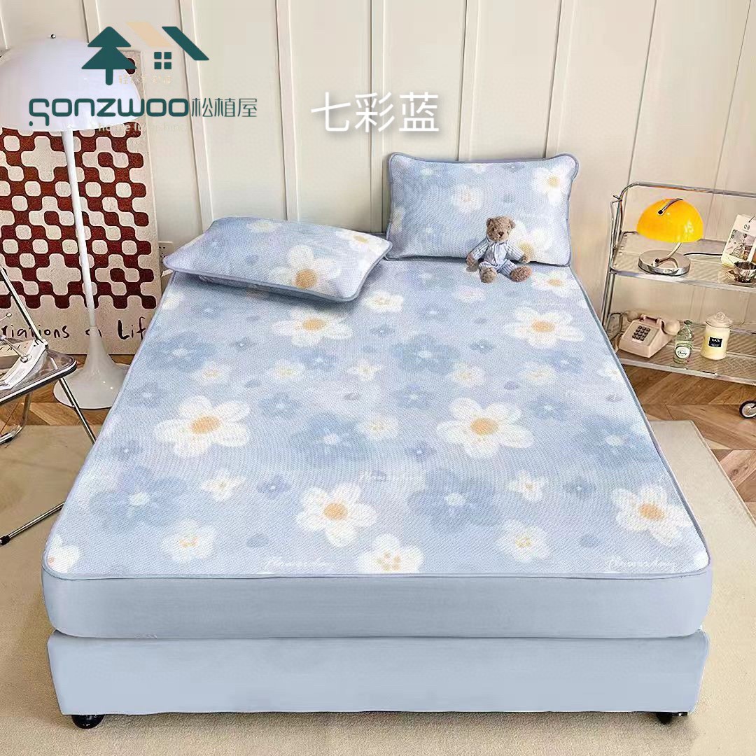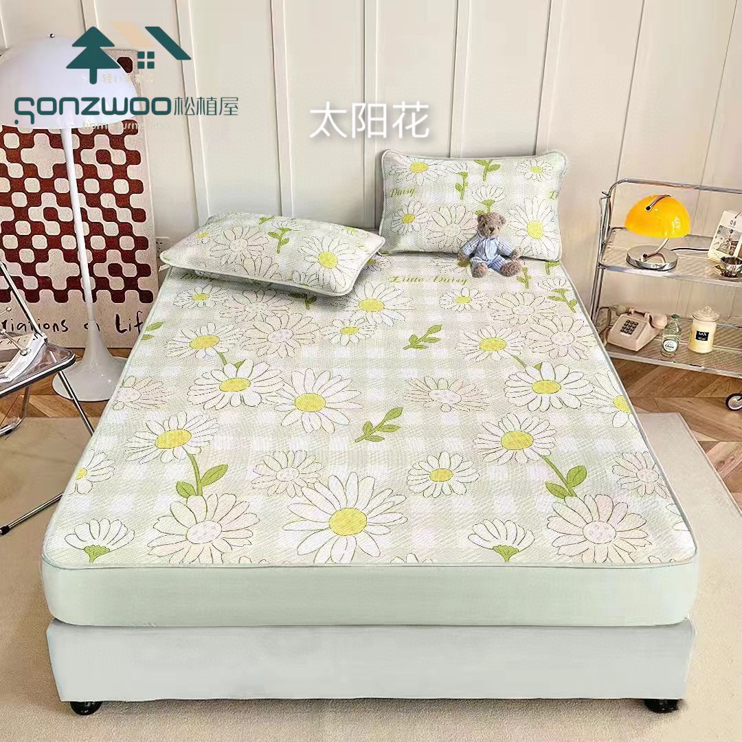 2024新款松植屋夏季冰晶席床笠三件套可水洗冰丝凉席床垫空调软席