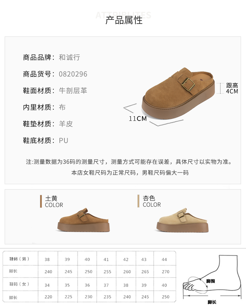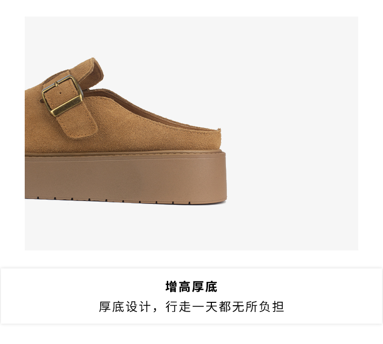和诚行 2025春季新款复古百搭勃肯鞋厚底舒适外穿女半包拖鞋0820296