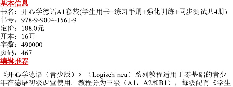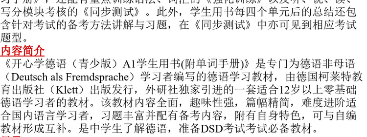 【外研社】开心学德语A1套装(学生用书+练习手册+强化训练+同步测试共4册)