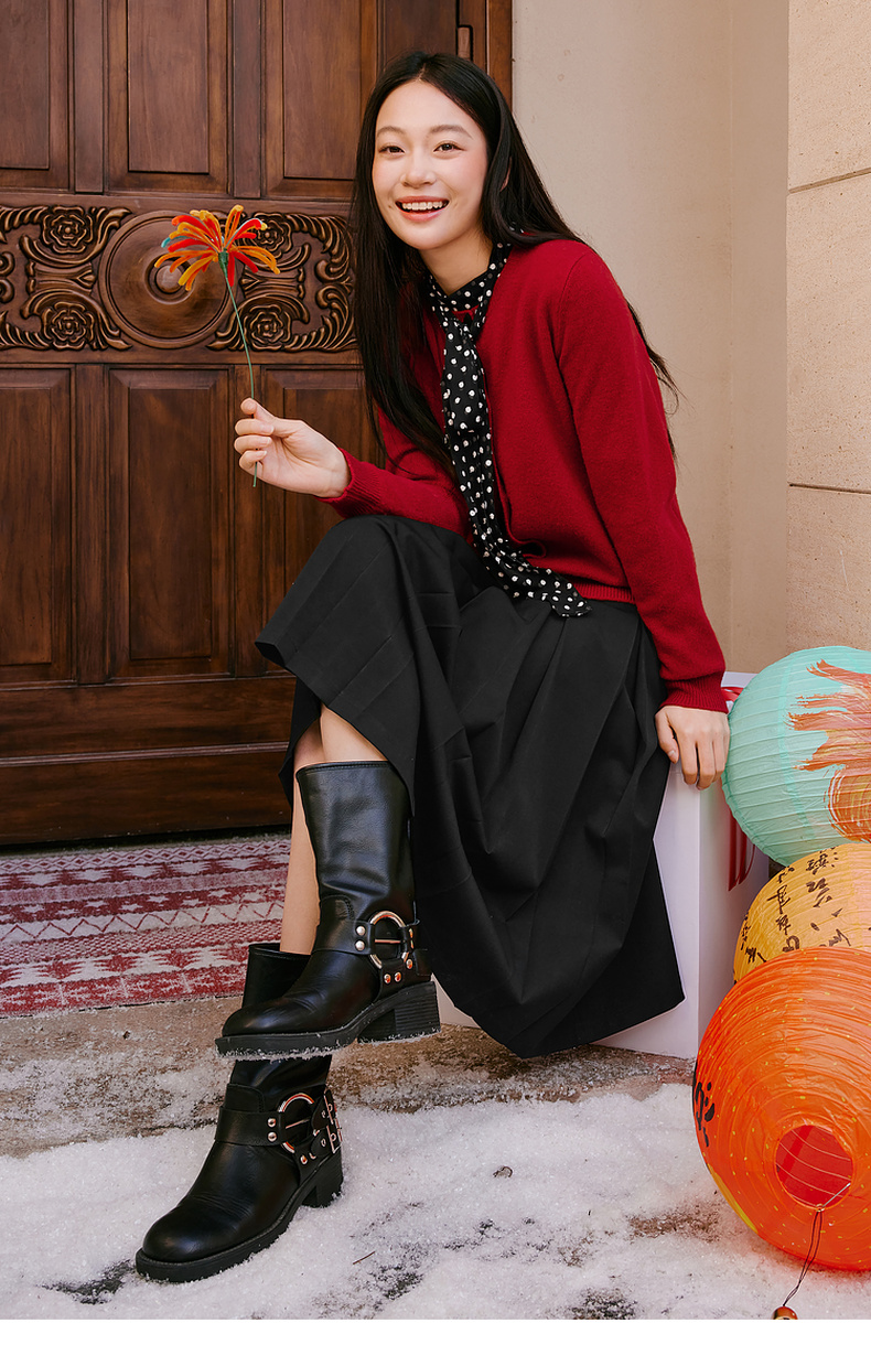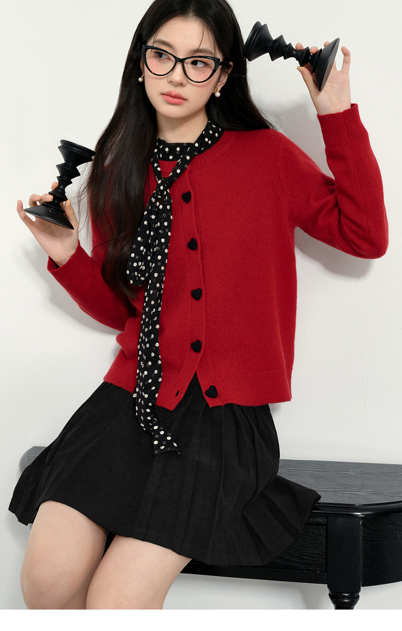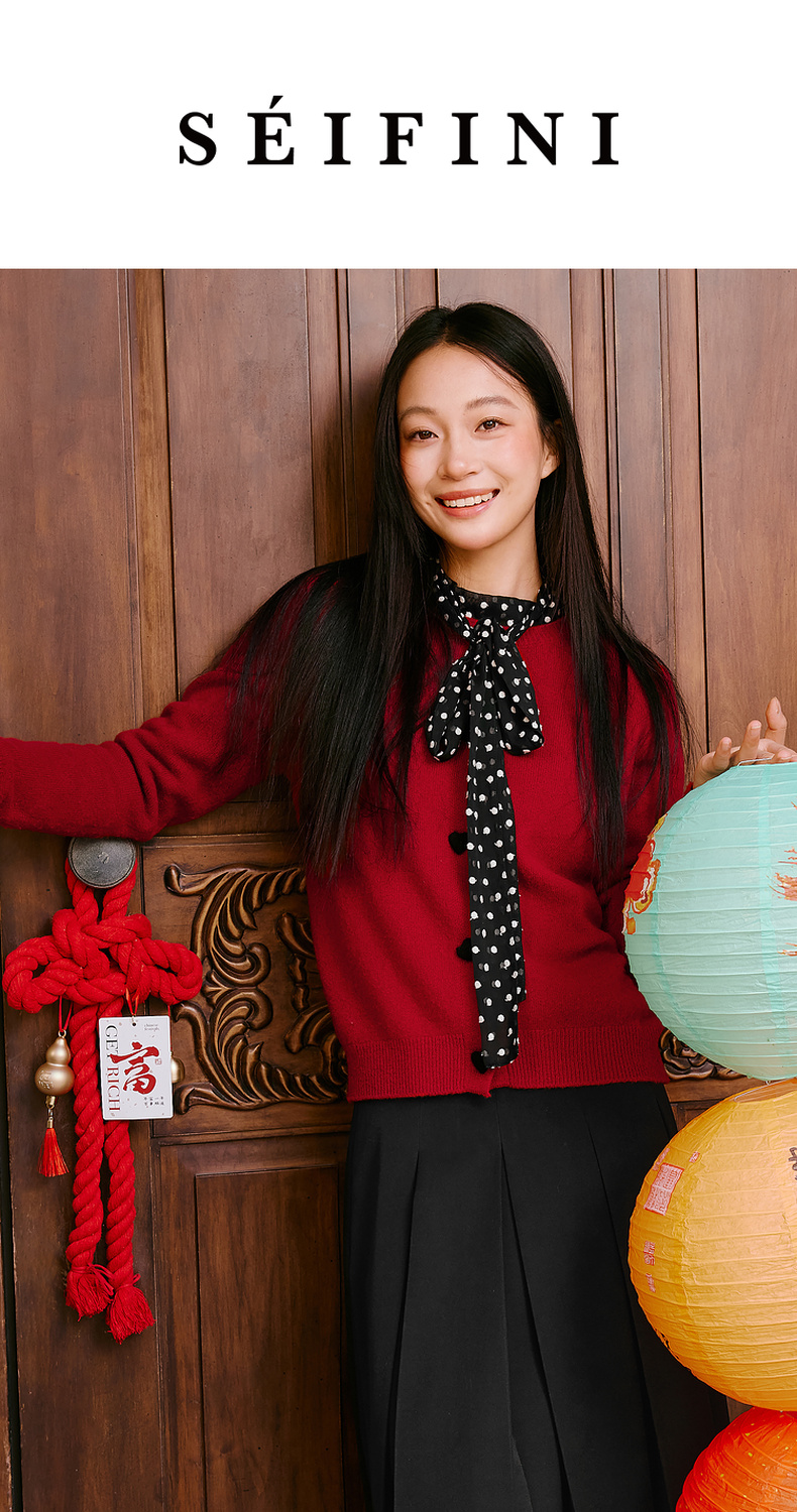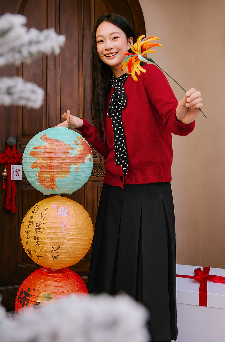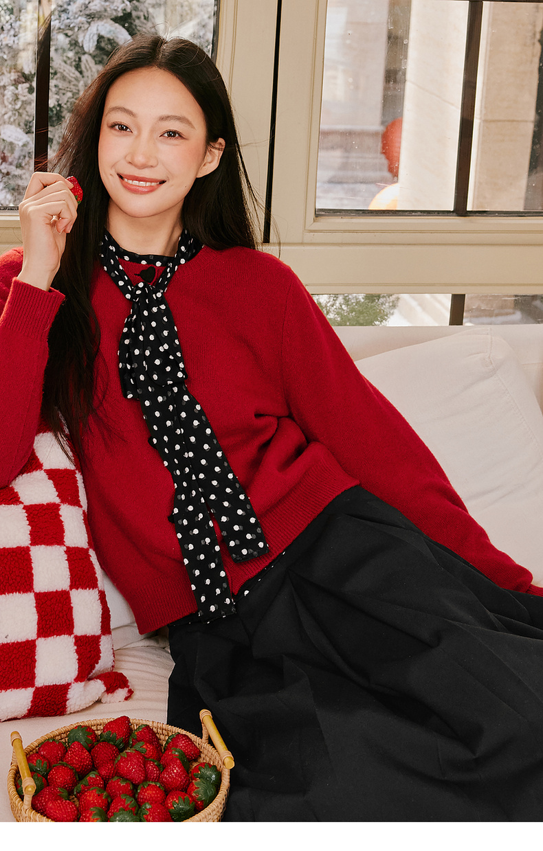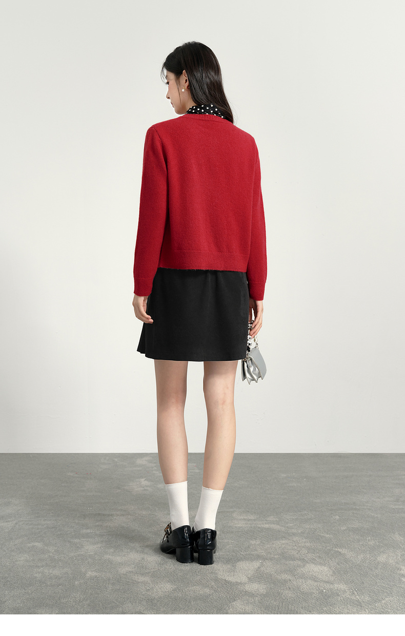 【特惠不退货】诗凡黎纯色圆领针织开衫2024冬新款毛衣女3FC130041