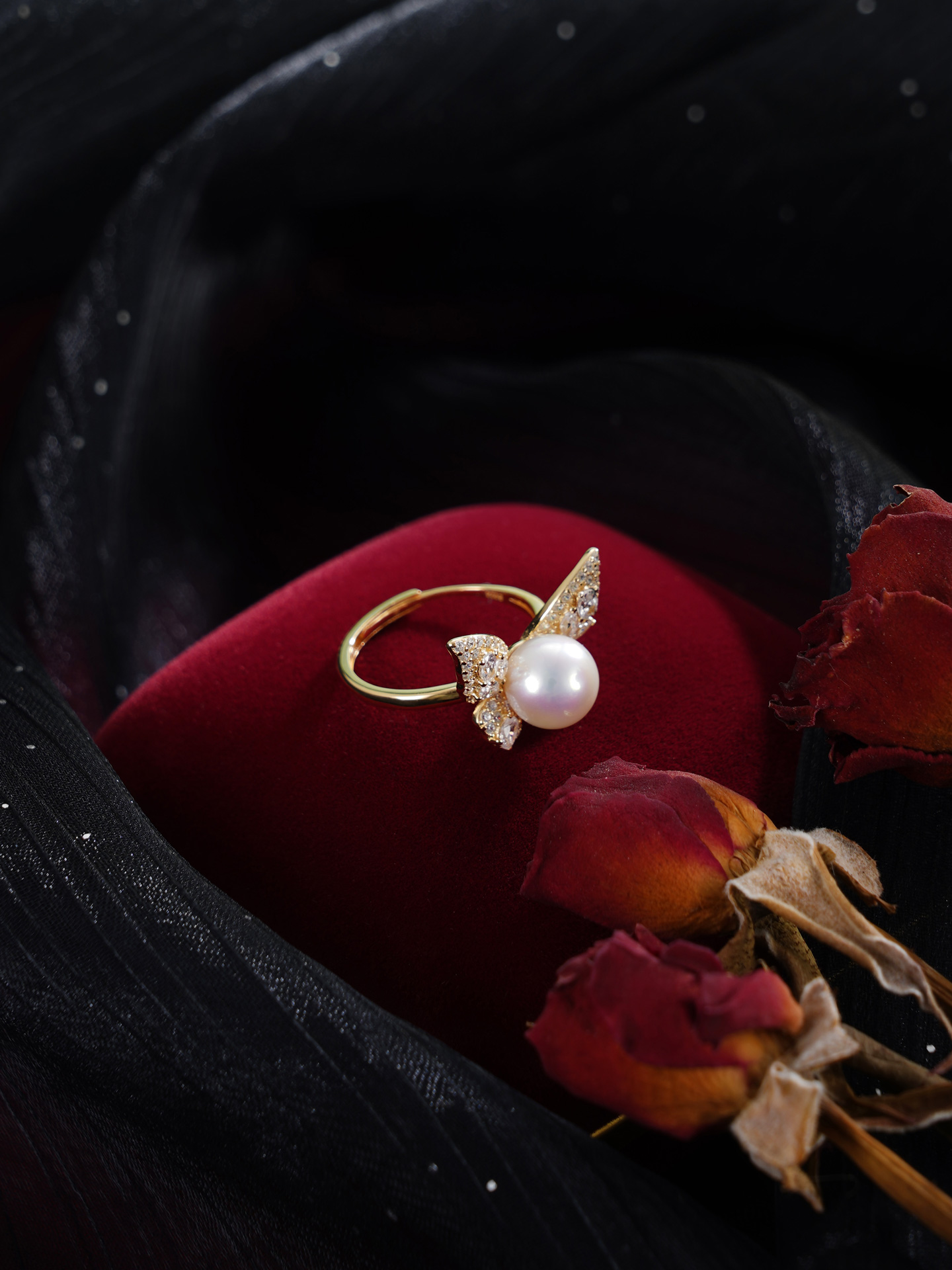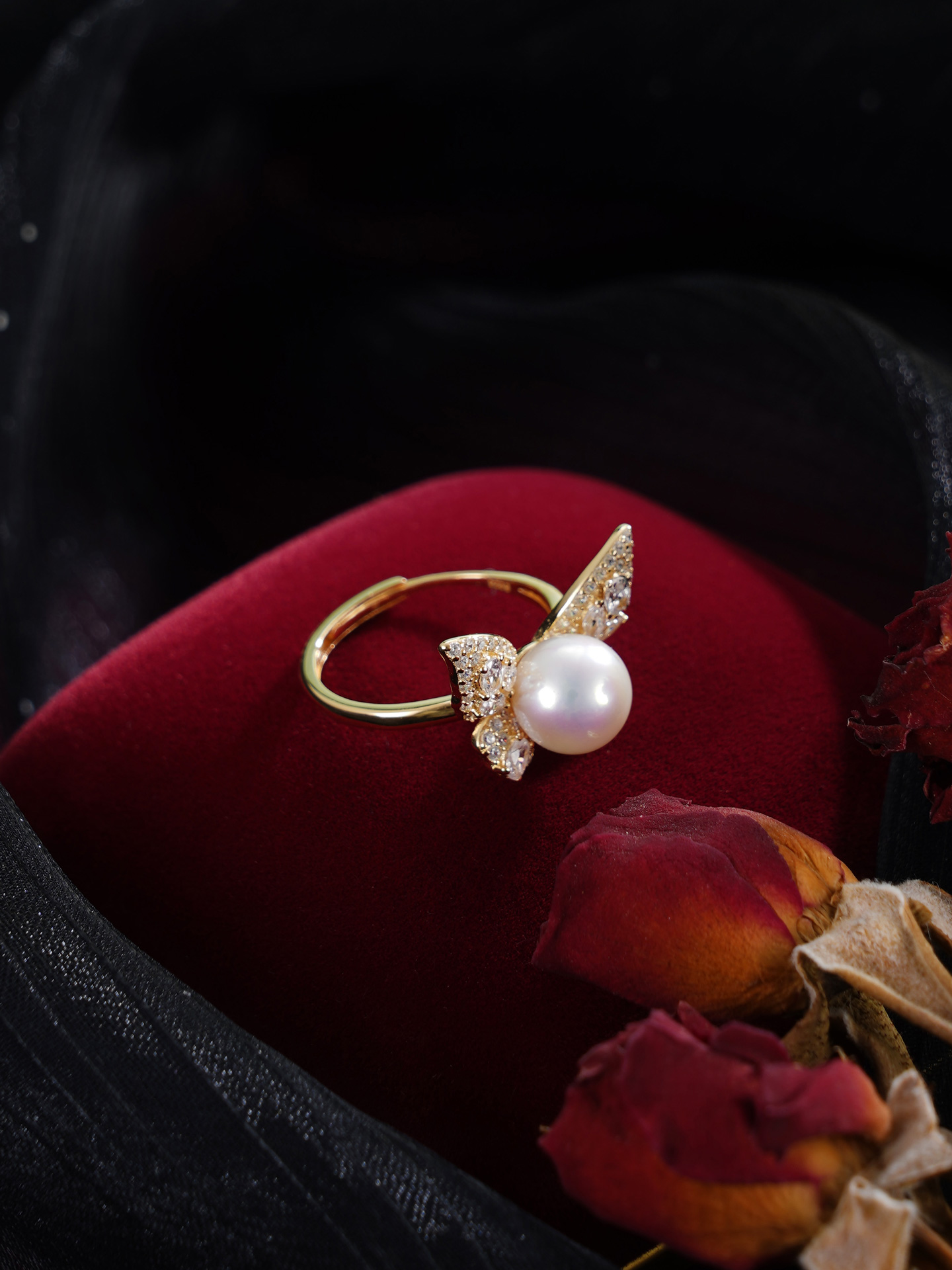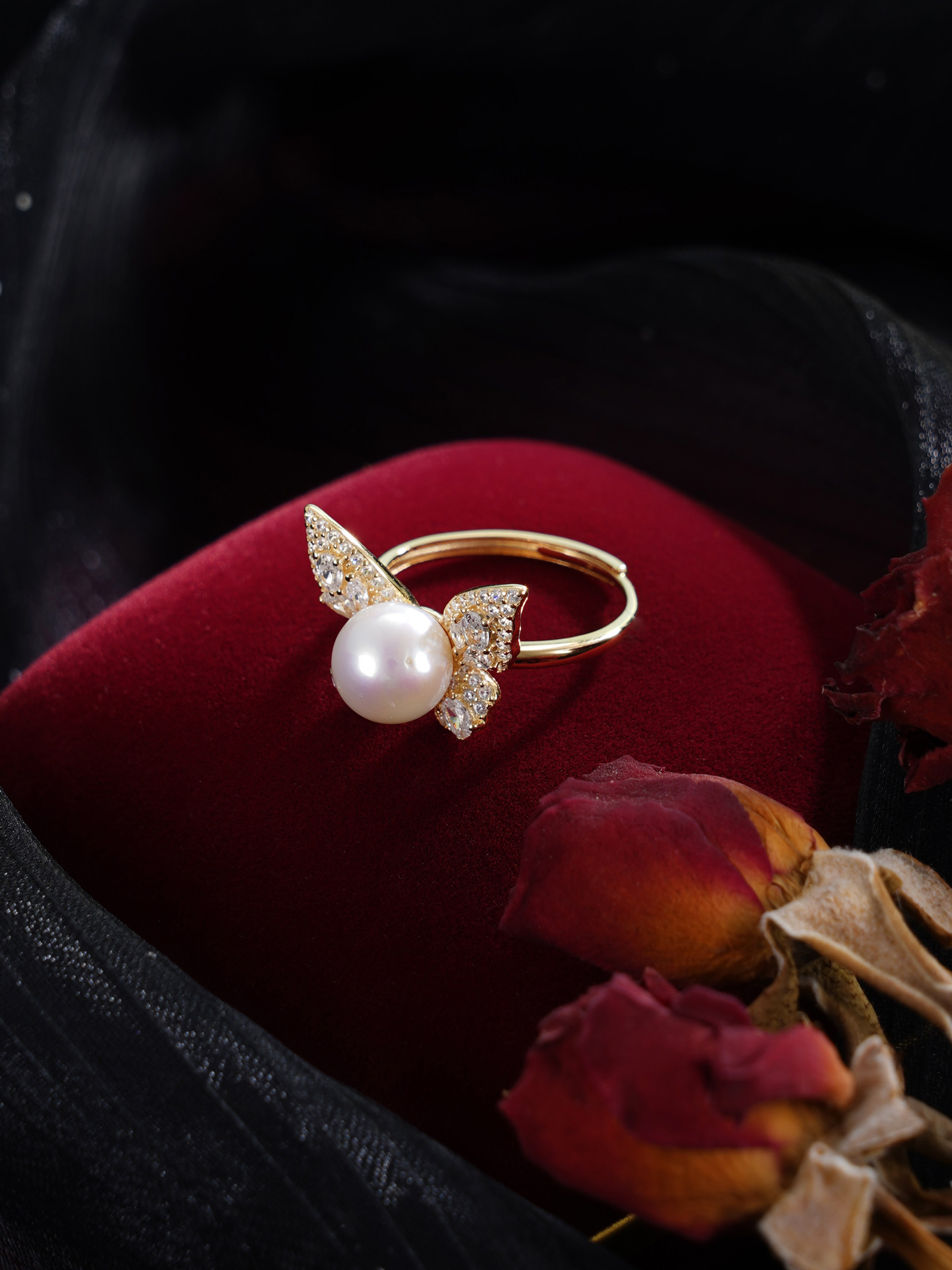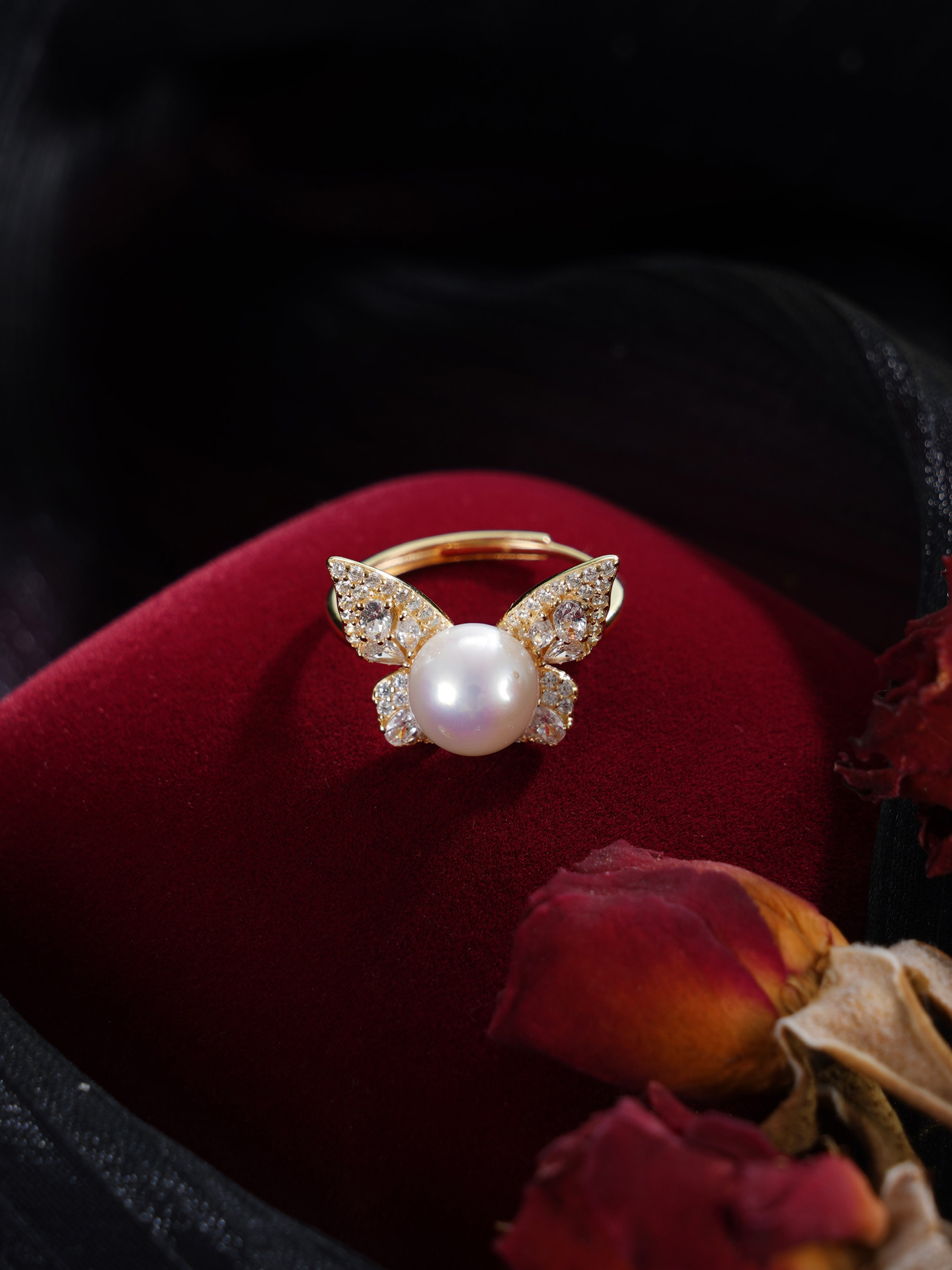 子佩集【蝴蝶巧梦】银S925珍珠AOYA奥雅戒指【MLJZ005】8mm珠镀金蝴蝶2512