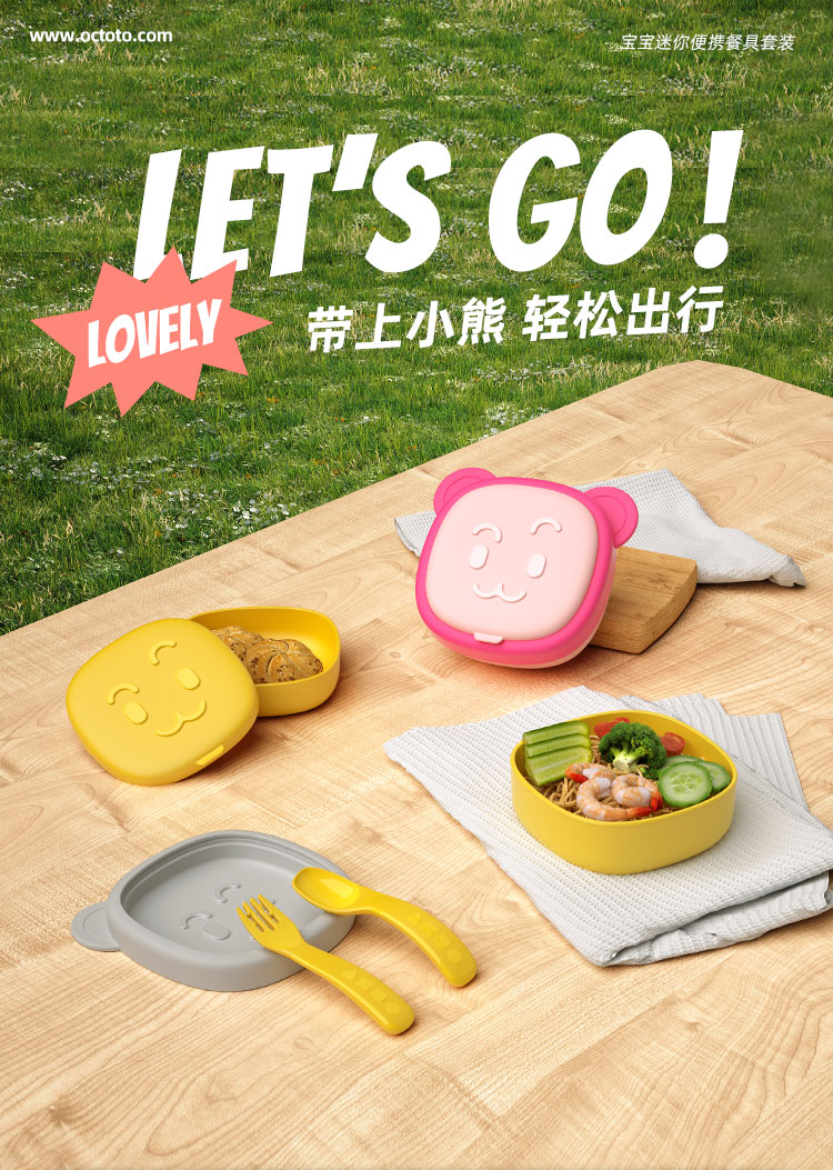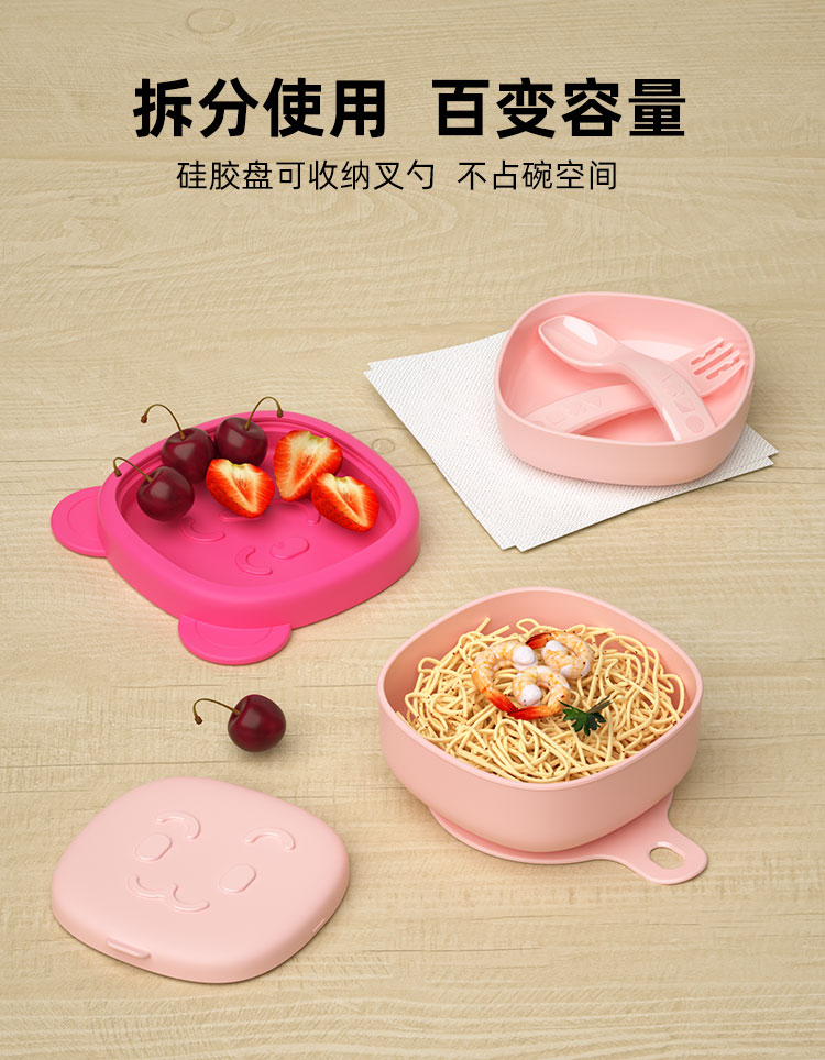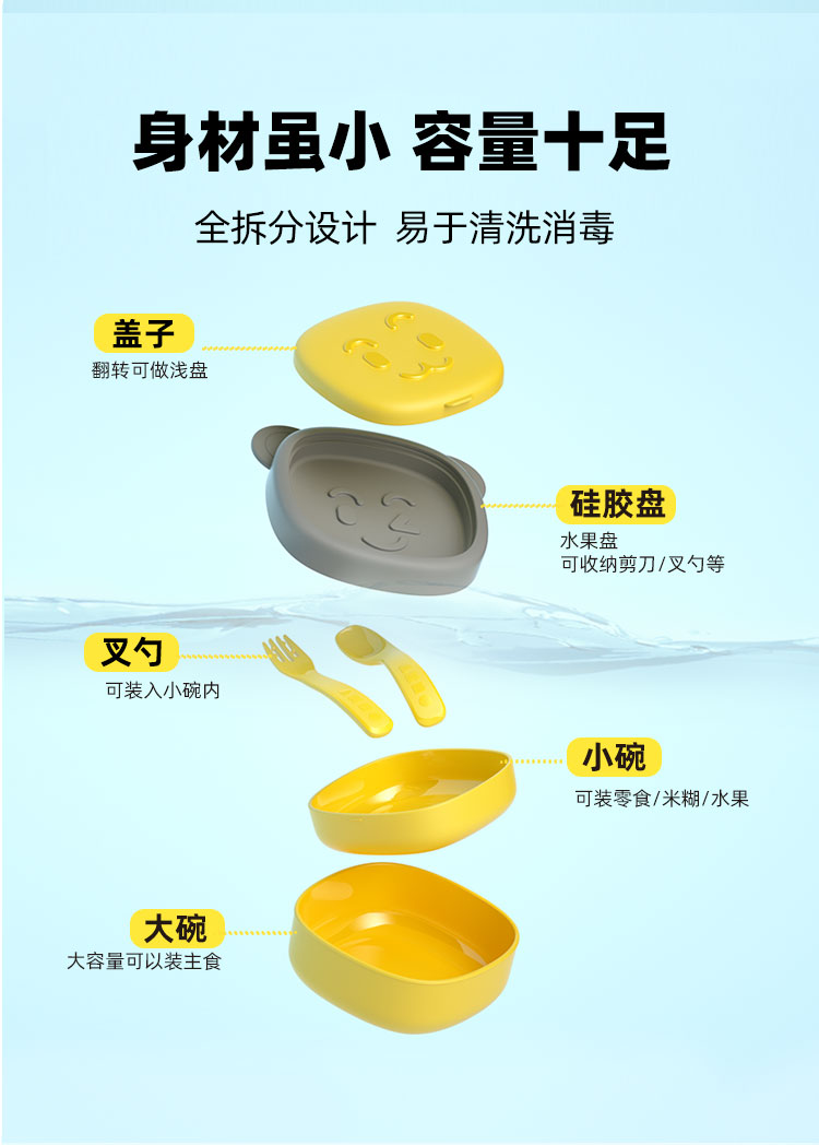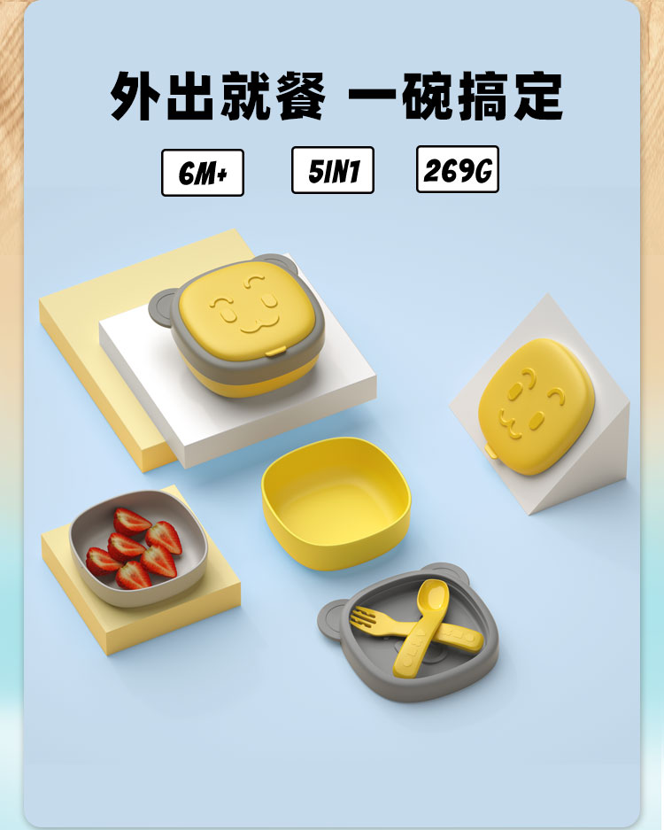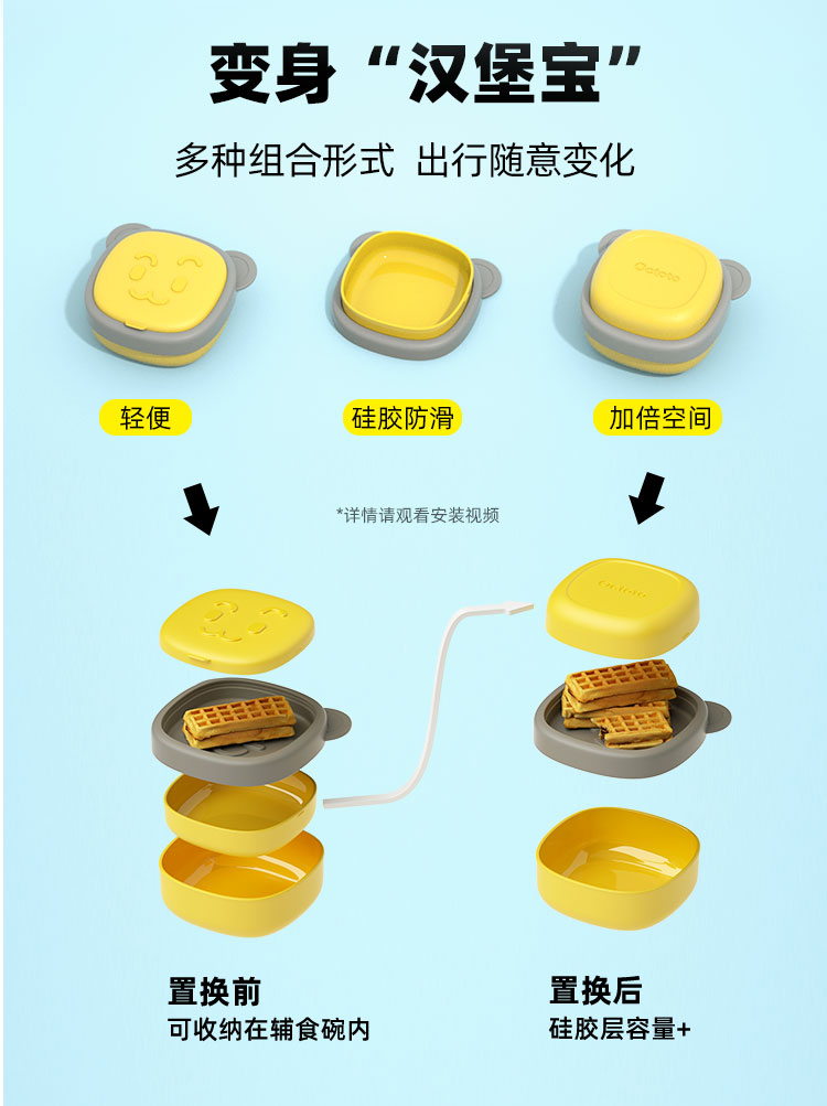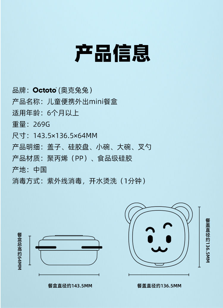 *【octoto奥克兔兔】迷你硅胶餐盒宝宝餐具儿童外出辅食碗婴儿便携饭盒