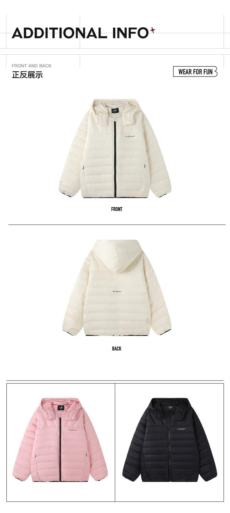 BJHG不计后果轻薄羽绒服男冬90白鸭绒可拆卸羽绒帽美式宽松外套女